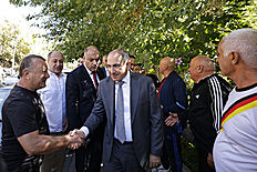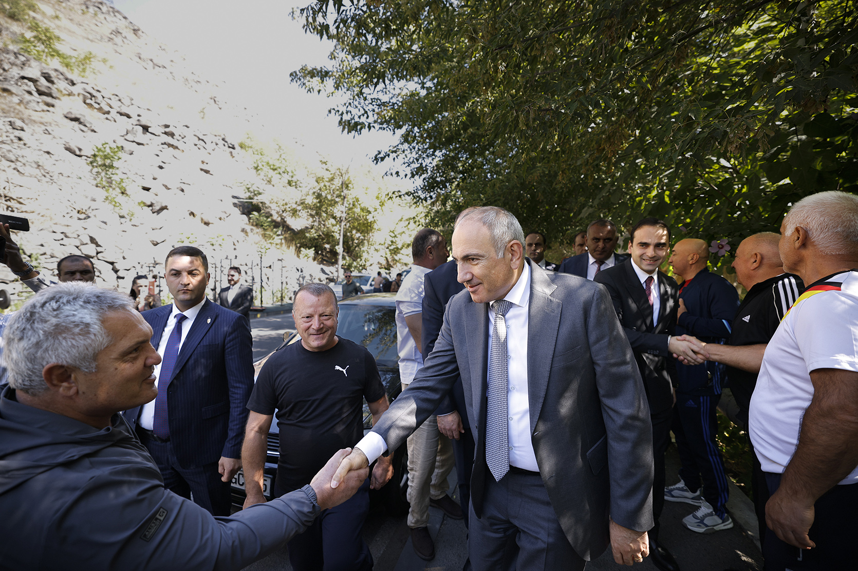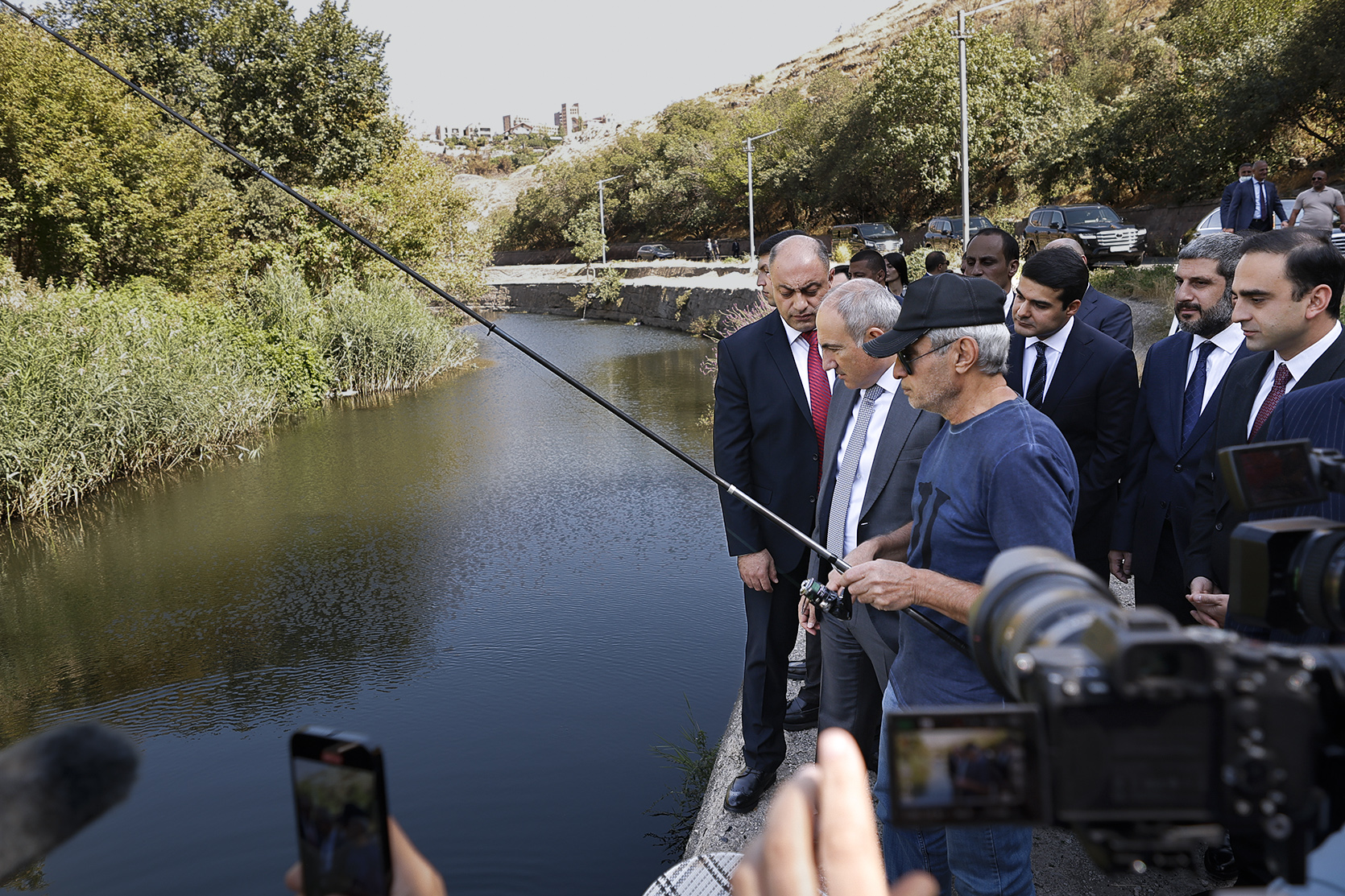 Next, the Prime Minister visited the open-air sports ground in the Hrazdan Gorge ("Bidzu Gol"), where he got acquainted with the implemented restoration works. The swimming pool was restored, a new locker room was built, and the sports equipment at the sports ground was renovated.
