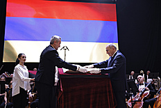 The ceremony of donating the scholarly and theological work of Sargis Shnorhali, ''Commentary on the Seven Catholic Epistles'', to the Matenadaran was held at the Aram Khachaturian Concert Hall ahead of the Independence Day of the Republic of Armenia.