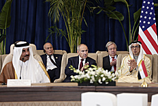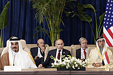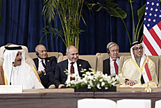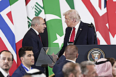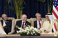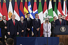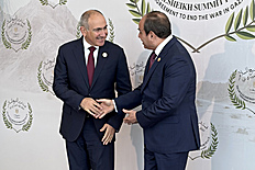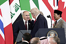 The summit participants were welcomed by Egyptian President Abdel Fattah al-Sisi, and then the Heads of State were greeted by US President Donald Trump.