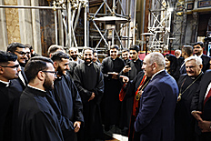 At the end of the meeting, the Catholicos-Patriarch of House of Cilicia of Armenian Catholic Church, His Holiness Raphael Petros 21st Minasyan, presented Prime Minister Pashinyan with a relic of St. Ignatius Maloyan, a ecclesiastical vestment, which is used during the Liturgy and is kept in the museum of the Bzommar Monastery (Lebanon). The Catholicos-Patriarch also presented the Prime Minister with a commemorative medal, made in memory of the canonization ceremony held in the Vatican on October 19.