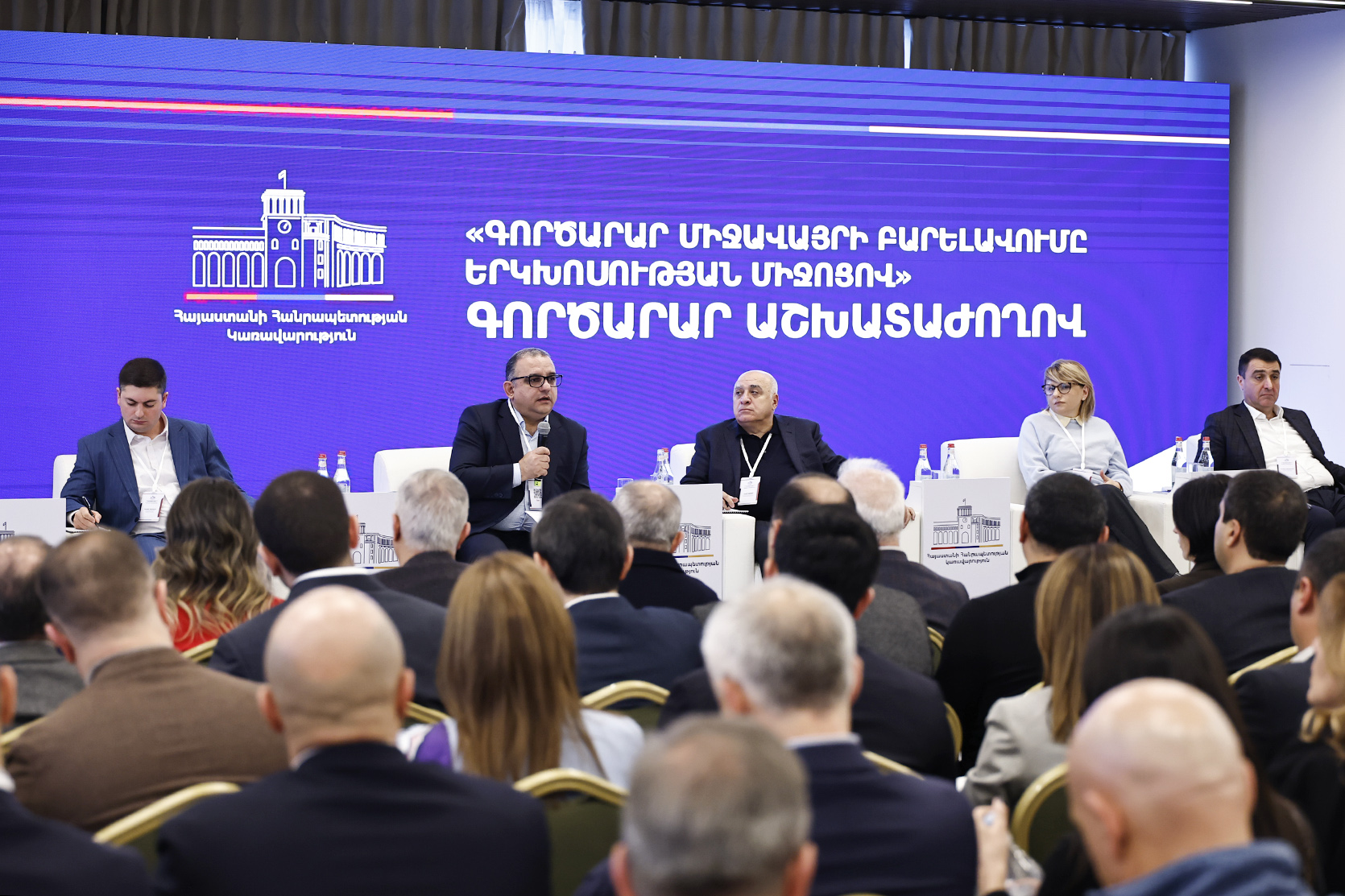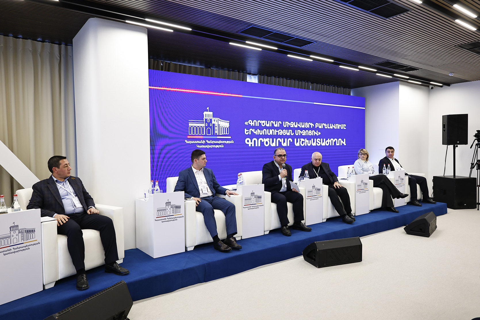 Next, discussions were held in three thematic areas reflecting the issues raised by the business community: directions for improving the investment environment, predictability of regulations and administration, and accountable and participatory governance. Representatives of the Government, the Central Bank, the business community, as well as non-governmental organizations dealing with business environment issues participated in the panel discussions.