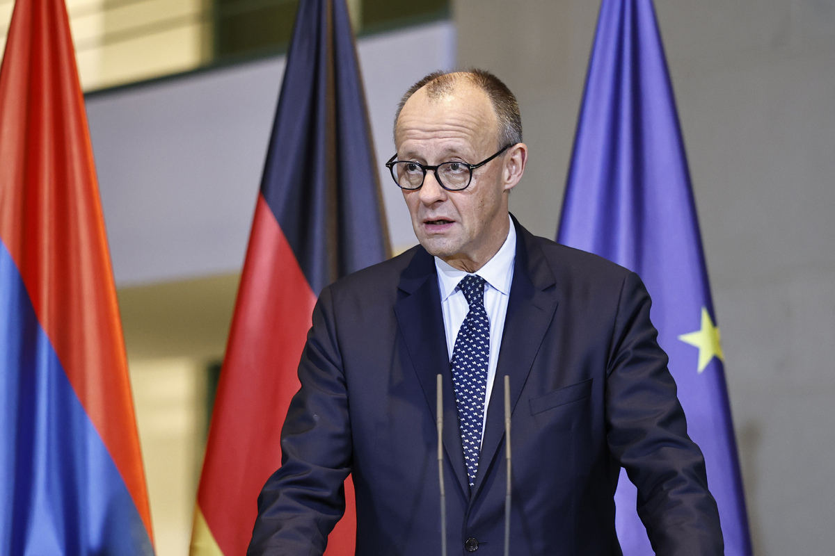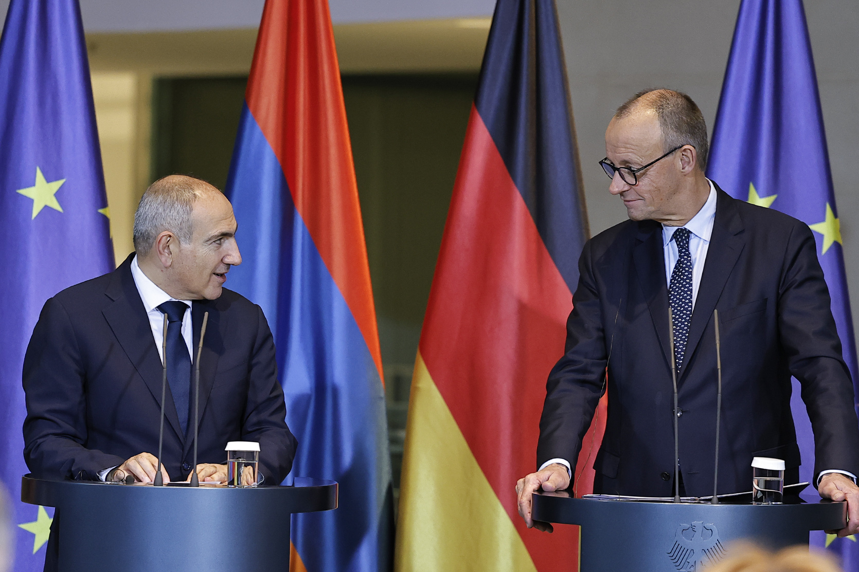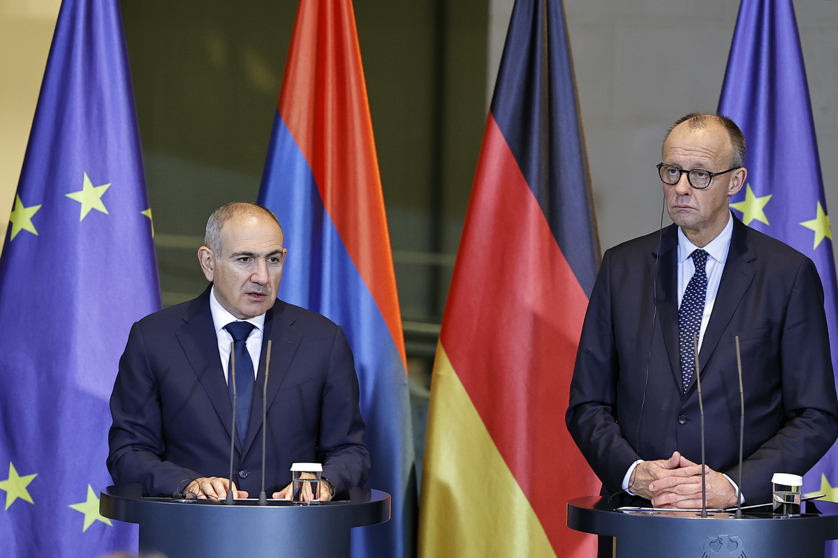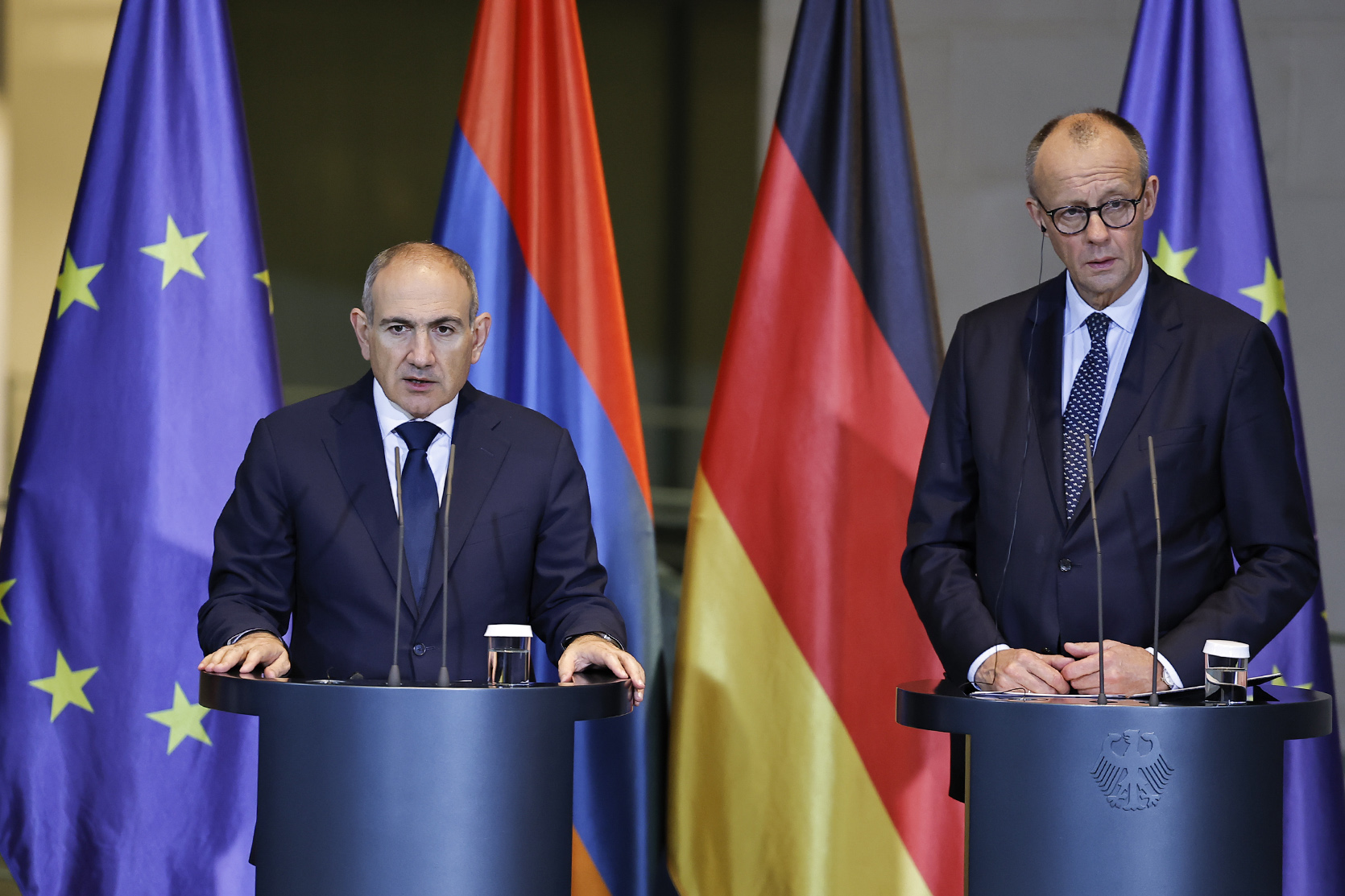 Nikol Pashinyan and Friedrich Merz make statements for media representatives