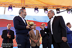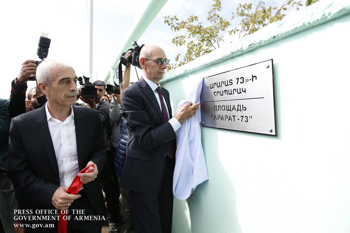Ensuite, le Premier ministre a participé à la plantation d’arbres près du monument dédié au 40e anniversaire de la victoire de l’équipe de football “Ararat-73” au centre d’Agarak. La place d’Agarak a été renommée "Ararat-73", à l'occasion de 45e anniversaire de sa victoire.