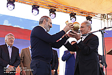Selon le Premier ministre, cette journée est spéciale parce que les citoyens se regardent avec fierté, avec amour, parce qu’ils sont honnêtes les uns envers les autres. "Lors d’une rencontre avec des hommes d’affaires arméniens à Saint-Pétersbourg, j’ai rencontré Hratchia Pogossian. Lorsque nous avons parlé du modèle de développement de l'Arménie, nous avons conclu que le rôle principal du Gouvernement est de créer des opportunités pour que les hommes d'affaires investissent en Arménie. Monsieur Pogossian a promis d’investir à Agarak. Ceux qui disent et qui font ce qu’ils disent sont nos partenaires les plus importants, ceux qui peuvent non seulement faire des œuvres de charité, mais également créer la possibilité pour chaque Arménien de gagner sa vie", a déclaré le Premier ministre, ajoutant que depuis l'indépendance, il s'agit de la première usine ouverte à Agarak.