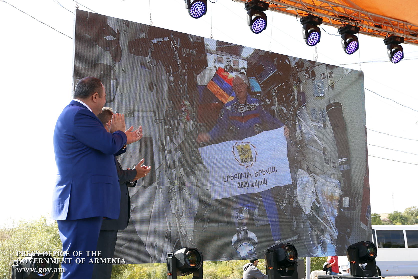 Le drapeau de l'Arménie est revenu dans le pays après avoir été dans l'espace, dans la station spatiale internationale 195 jours. Il a été pris par le cosmonaute Oleg Artemev. À la veille de l'événement festif, le drapeau arménien a été porté en Arménie par l'astronome russe Anton Shkaplerov et l'a remis à Agarak au Premier ministre Nikol Pashinyan. Parallèlement, l'affiche dédiée au 2800e anniversaire d'Erevan sera apportée en Arménie deux semaines plus tard.