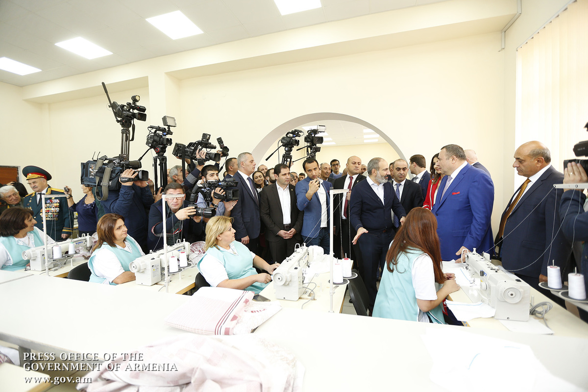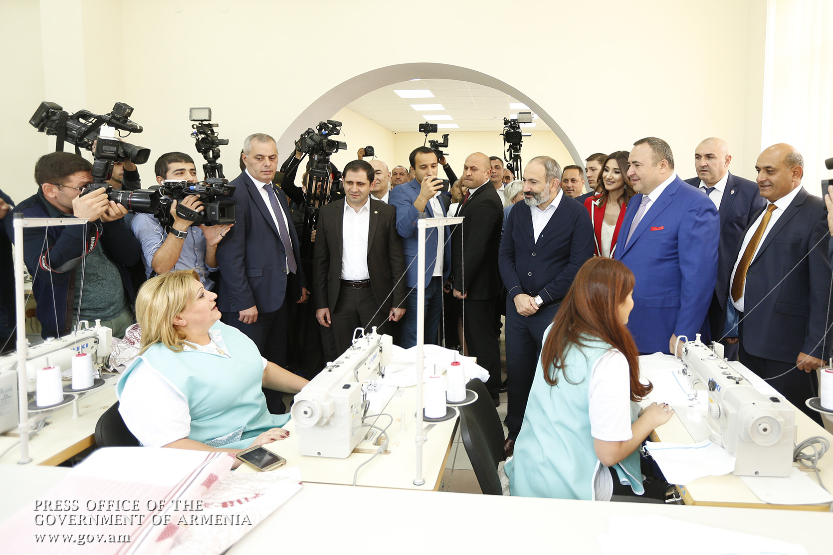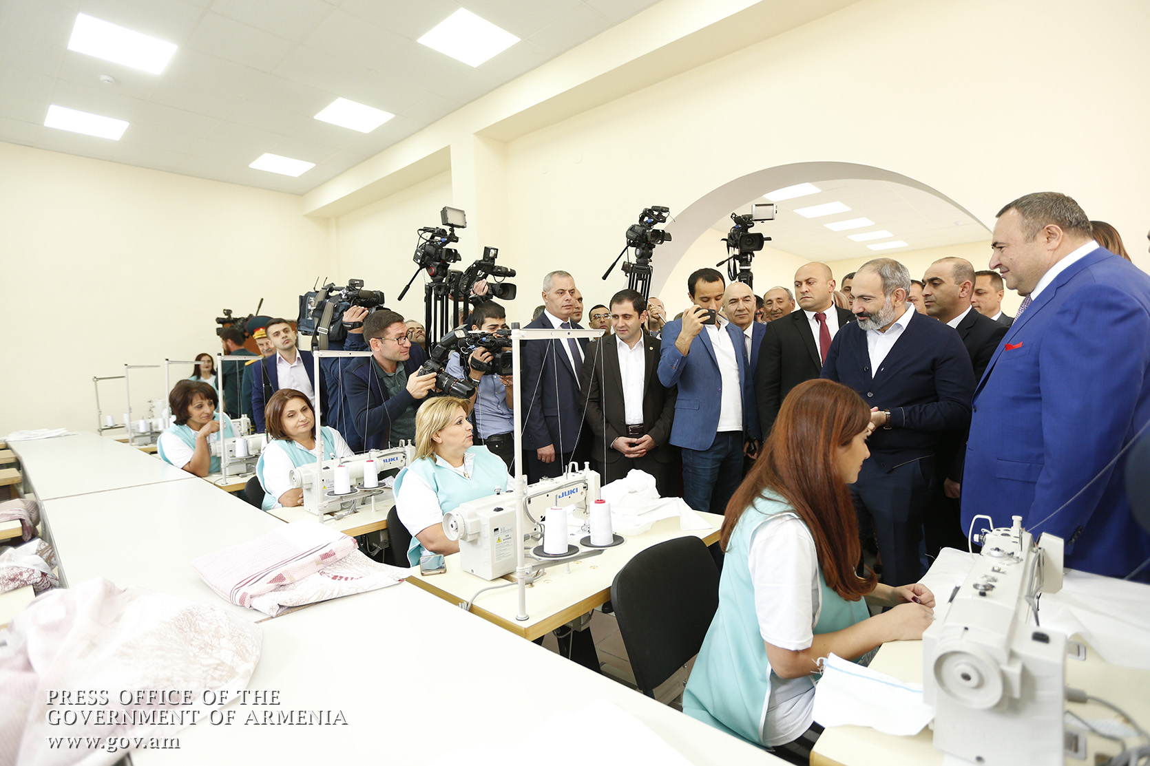 Le Chef du gouvernement a d’abord pris part à l’ouverture de l’usine de couture. Elle a été fondée par l'homme d'affaires Hratchia Pogossian. Il est l'un des participants à la rencontre entre le Premier ministre Nikol Pashinyan et les hommes d'affaires qui s'est tenue récemment à Saint-Pétersbourg. La construction d'un nouveau atelier est en cours. Il est prévu d'augmenter le nombre d'emplois à 100. Nikol Pashinyan a visité l'atelier et s'est familiarisé avec les travaux. Le Chef du gouvernement a exprimé son espoir que la production se développera bientôt, de nouveaux emplois seront créés, une productivité élevée sera assurée.