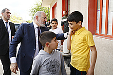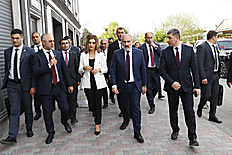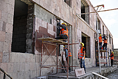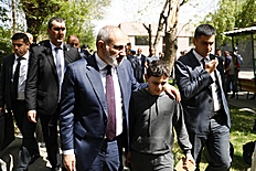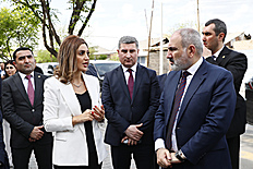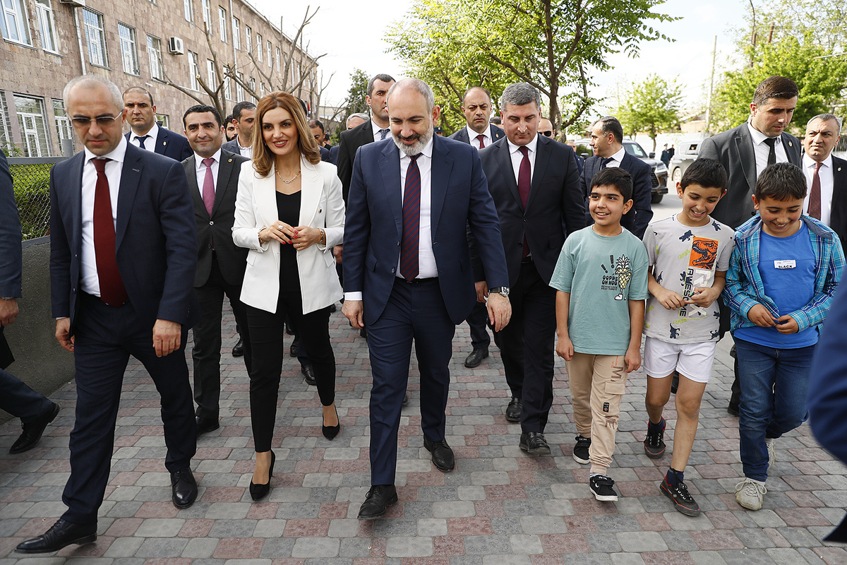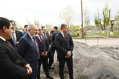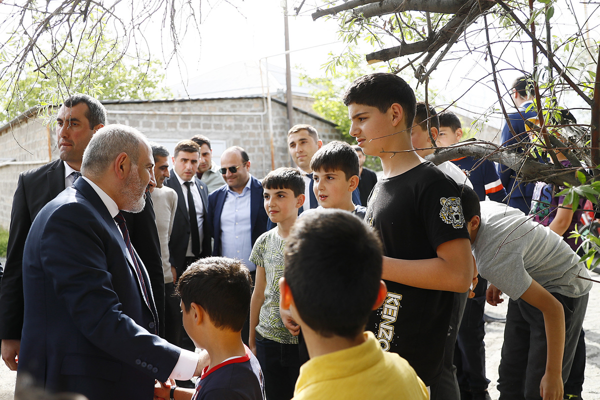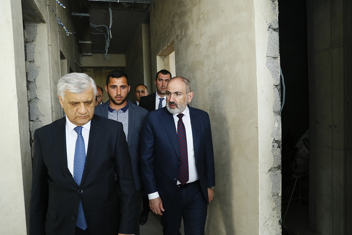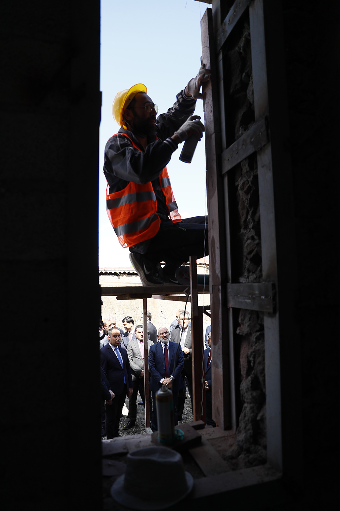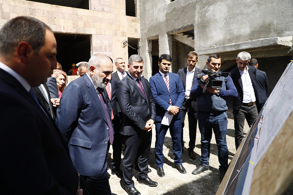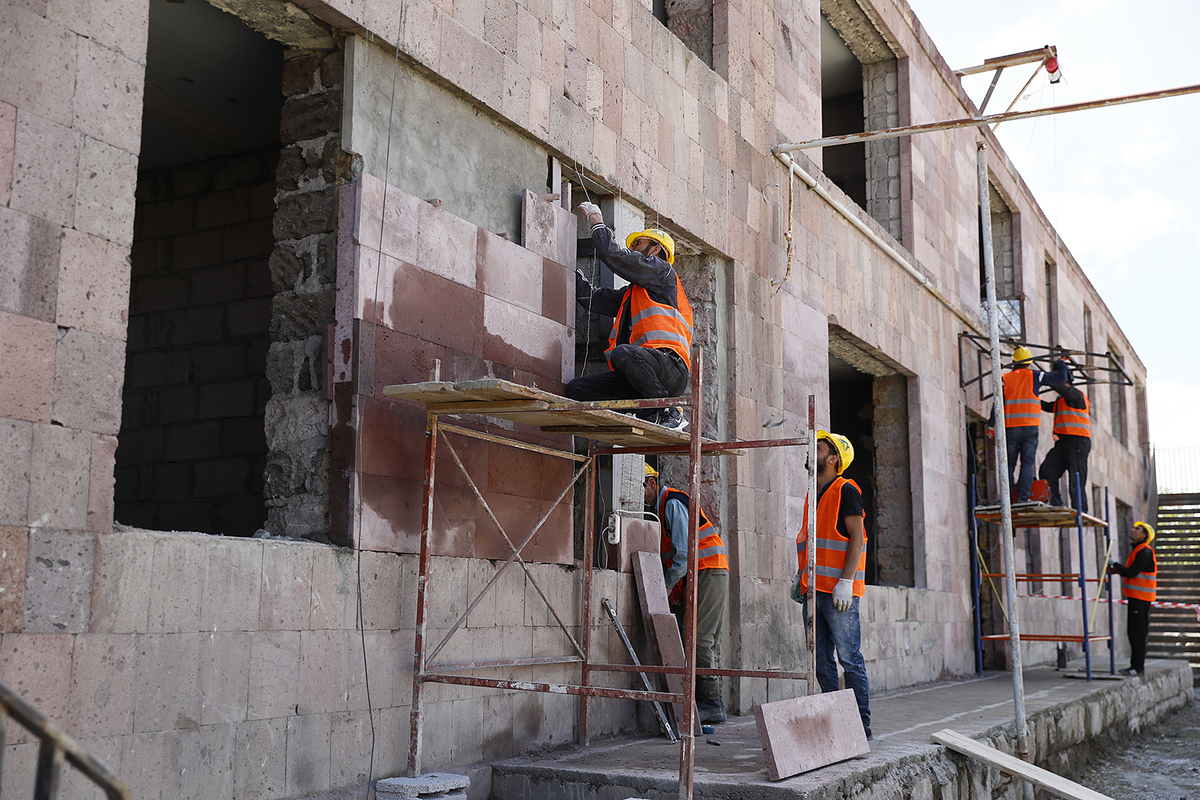 Le chef du gouvernement a ensuite visité la ville d'Etchmiadzin. Au cours de sa visite, il a d'abord pris connaissance de l'état d'avancement de la construction du nouveau gymnase et de la salle de cérémonie de l'école primaire n° 7 de Yervand Otyan. Les travaux ont commencé l'année dernière et s'achèveront en août. Le coût total du projet s'élève à 271 millions d'AMD, les fonds étant fournis par le gouvernement. L'école compte 606 élèves.