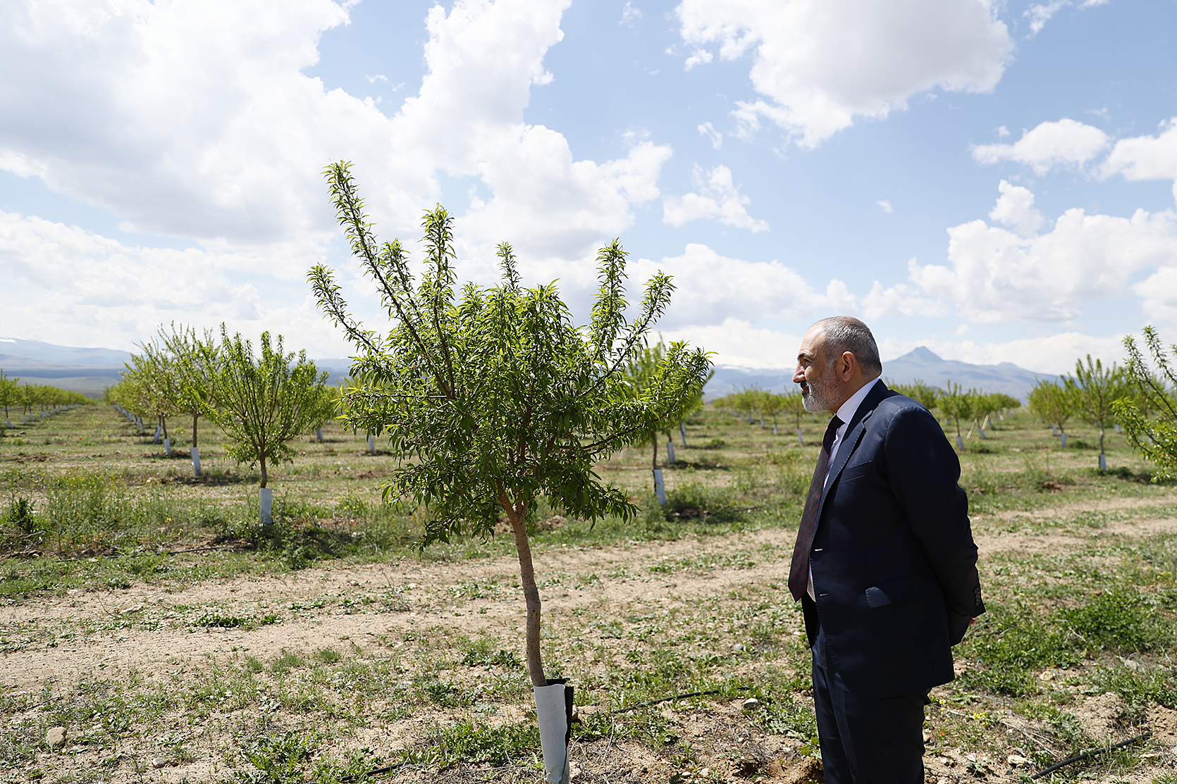 Ensuite, le Premier ministre s'est rendu dans la localité de Vanand, où les représentants du secteur privé réalisent des travaux pour l'établissement d'un verger intensif d'amandiers et la construction d'un réservoir. Le programme a été lancé en 2019. La société "Vanand Agro" a acquis 800 hectares de terres, sur lesquelles un verger intensif d'amandiers de 360 hectares a déjà été créé. Un réservoir d'une capacité de 100 000 mètres cubes a également été construit. Il est prévu de construire le deuxième réservoir dans un avenir proche et de poursuivre les travaux d'établissement du verger. Le programme d'investissement est estimé à 10 milliards d'AMD. Le Premier ministre a salué l'initiative et a noté que le gouvernement encourage les programmes et les projets mis en œuvre dans le sens de l'agriculture moderne.