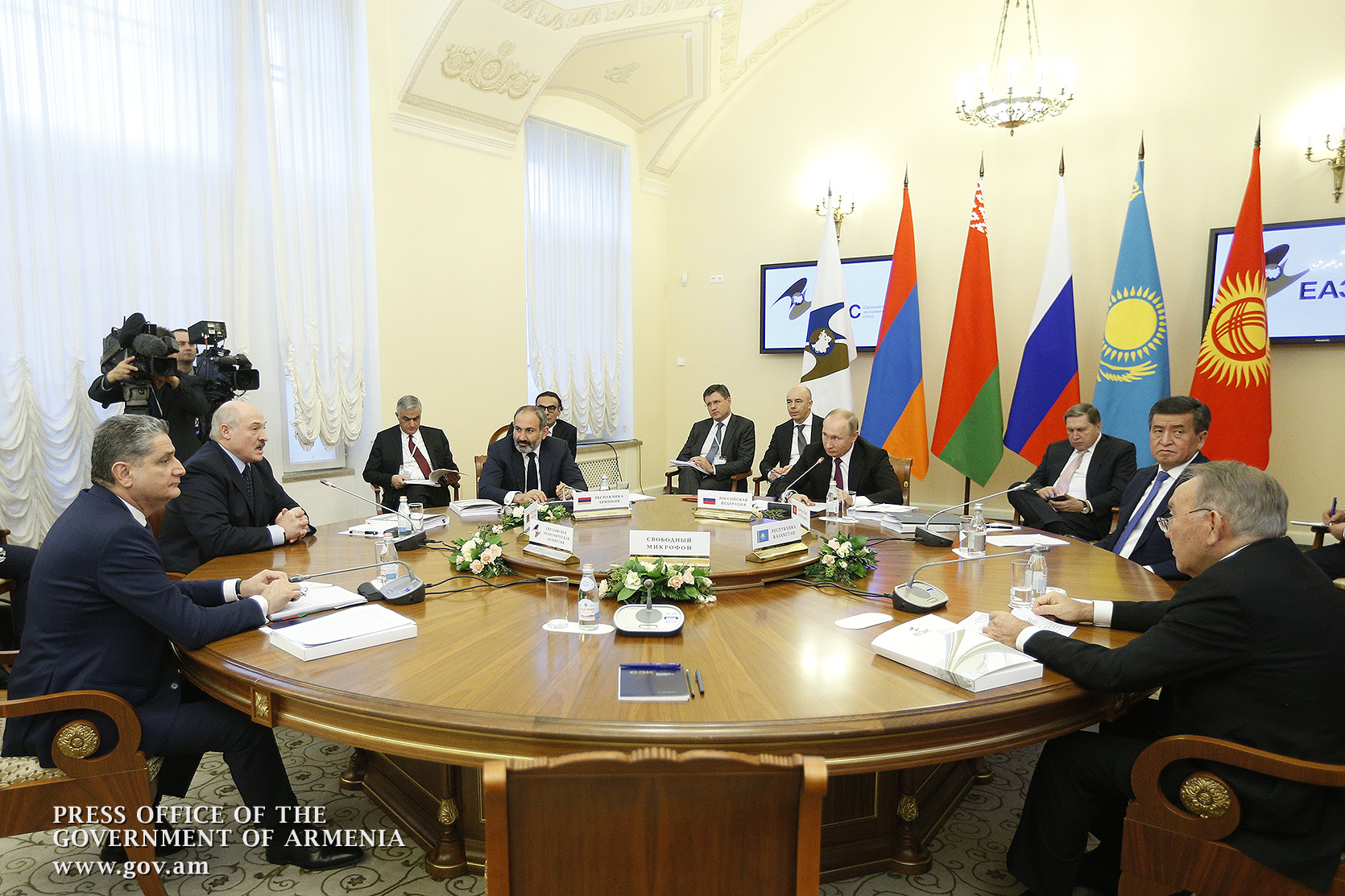 Le Premier ministre par intérim, Nikol Pashinyan, qui est en visite de travail dans la Fédération de Russie, a participé à la session ordinaire du Conseil suprême de l'Union économique eurasienne à Saint-Pétersbourg. Le Président du Bélarus, Alexandre Loukachenko, le Président de la République du Kazakhstan, Noursoultan Nazarbaïev, le Président du Kirghizistan, Sooronbay Jeenbekov, le Président de la Fédération de Russie, Vladimir Poutine, ont également participé à l'événement. Le président du conseil de la Commission économique eurasienne, Tigran Sarkissian, était présent à la session.