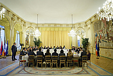 Un dîner officiel a été organisé en l'honneur du Premier ministre de la République d'Arménie Nikol Pashinyan et Mme Anna Hakobyan au nom du Président français, M. Emmanuel Macron et Mme Brigitte Macron.