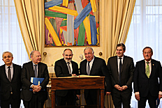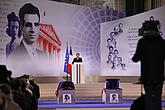 Merci Monsieur le Premier Ministre Nikol d'être à Paris aujourd'hui en ce jour important. Le 21 février était la date à laquelle, en effet, Missak Manouchian et ses camarades de résistance, tombaient dans la clairière du Mont-Valérien ; ce sera désormais jour où la patrie les a pleinement reconnus et celle de leur entrée au Panthéon.