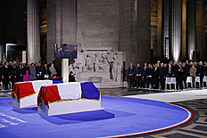 Le Premier ministre Nikol Pashinyan et Mme Anna Hakobyan, ainsi que le Président français Emmanuel Macron et Mme Brigitte Macron ont assisté à la cérémonie de l'entrée au Panthéon des dépouilles de Missak Manouchian, héros arménien de la Résistance et de Melinée Manouchian.