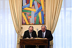 Je tiens également à vous remercier tout particulièrement pour votre soutien aux réformes démocratiques en Arménie. Dans ce contexte, nous entrons en effet dans une nouvelle étape dynamique de nos relations avec l'Union européenne. Et je dois souligner ici le soutien personnel de la France et de vous-même dans ce cas, parce que l'Union européenne est également essentielle au développement des réformes démocratiques et de la capacité institutionnelle de notre pays.