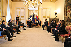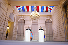 Nous serons présents aujourd'hui à la cérémonie d'entrée au Panthéon de Missak Manouchian, l'un des héros de la Résistance française, notre compatriote Misak Manouchian, au panthéon des plus grands hommes de France, et c'est un grand honneur pour nous d'être présents à cet événement et à cette cérémonie. Je pense que l'événement d'aujourd'hui montre également la profondeur des relations existantes entre nos pays et nos peuples, parce qu'elles ne sont pas seulement politiques, économiques, humanitaires, culturelles, mais je pense que nous sommes liés par un lien émotionnel profond. Je tiens également à vous remercier pour votre décision, car celle-ci souligne une fois de plus non seulement notre amitié et la profondeur de nos relations, aussi une évaluation unique et particulière des Arméniens qui ont contribué à la création de la France, ce qui est un honneur et une grande fierté pour nous.