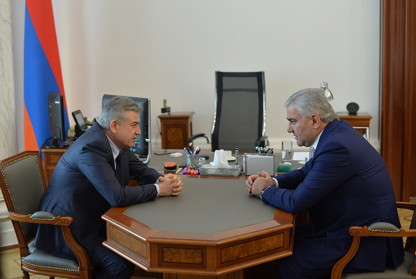 Le Premier ministre par intérim, Karen Karapetyan, a rencontré aujourd’hui Samvel Karapetyan, président du Groupe Tashir et fondateur du Club des investisseurs d’Arménie.