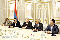 «Je vous salue chers collègues. M. Ter-Khatchatourian, je suis heureux de faire votre connaissance. Je tiens à vous féliciter, ainsi que les autres membres du Bureau, et à souhaiter tout le succès pour le bien de la République d'Arménie, de la République d'Artsakh et de notre peuple en général. Bien sûr, j'ai toujours répété que j'apprécie beaucoup l'activité de la Fédération Révolutionnaire Arménienne et que je souligne la nécessité de la poursuivre. Notre gouvernement veut et a tendance à avoir une coopération large et efficace avec la FRA-Dachnaktsoutioun, car il est clair que nous n’avons pas le même point de vue sur de nombreuses questions, mais il y a aussi beaucoup de questions sur lesquelles nos vecteurs de perception coïncident. Je suis donc heureux de cette occasion et je suis également persuadé que nous aurons l'occasion de discuter de questions courantes. Je vous félicite encore une fois, ainsi que les autres membres du Bureau, à l'occasion de votre élection», a noté Nikol Pashinyan.