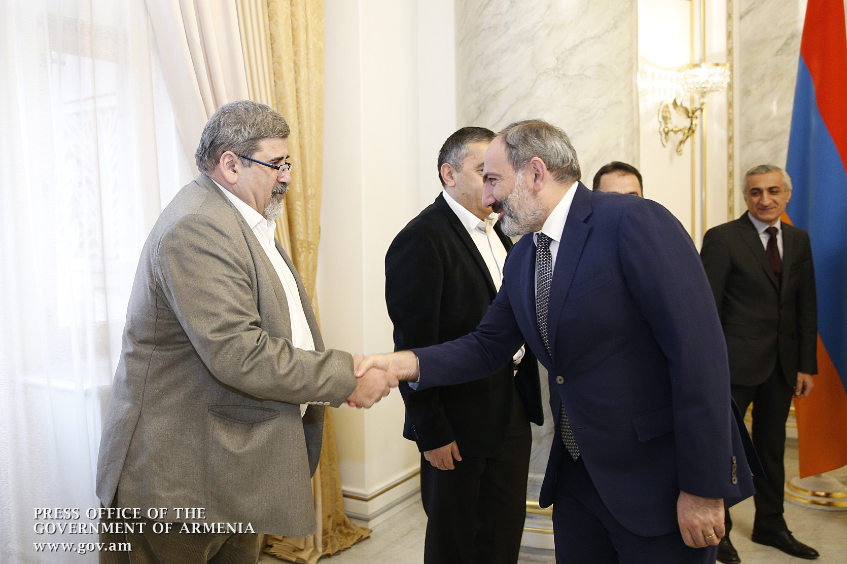 «Merci, Monsieur le Premier Ministre! Tout d’abord, je tiens à vous féliciter personnellement pour votre nomination au poste de Premier ministre et à vous remercier également de nous avoir invités avant notre réunion afin de rencontrer de nouveaux membres du Bureau. Je suis heureux qu'il y ait une opportunité d'avoir une conversation ouverte. Comme nous le soulignons dans nos slogans, notre objectif est d'avoir une patrie puissante et une diaspora puissante, et je suis convaincu que, dans cette direction, nous pourrons coopérer dans de nombreux domaines, dans l’intérêt de nos priorités nationales. Nous sommes toujours avec notre Etat, nous sommes les plus ardents défenseurs des droits des Arméniens vivant en Arménie, dans l'Artsakh et sur nos terres arméniennes», a dit Hakob Ter-Khatchatourian.