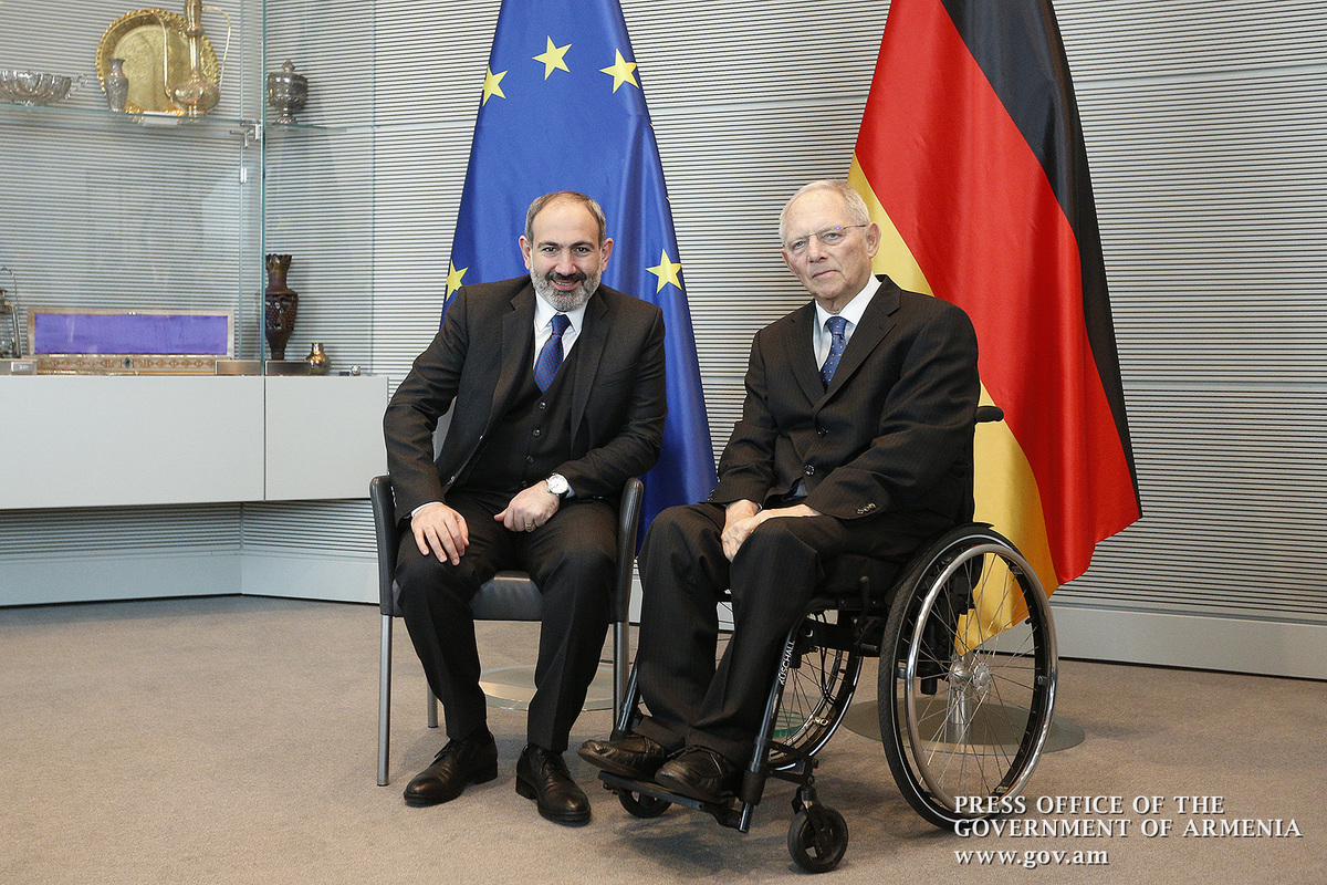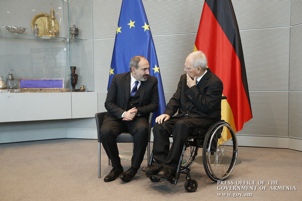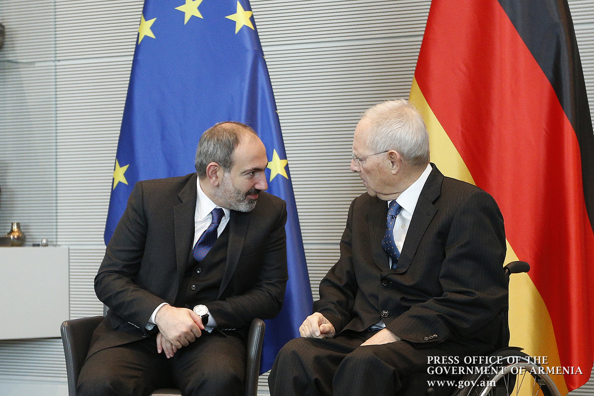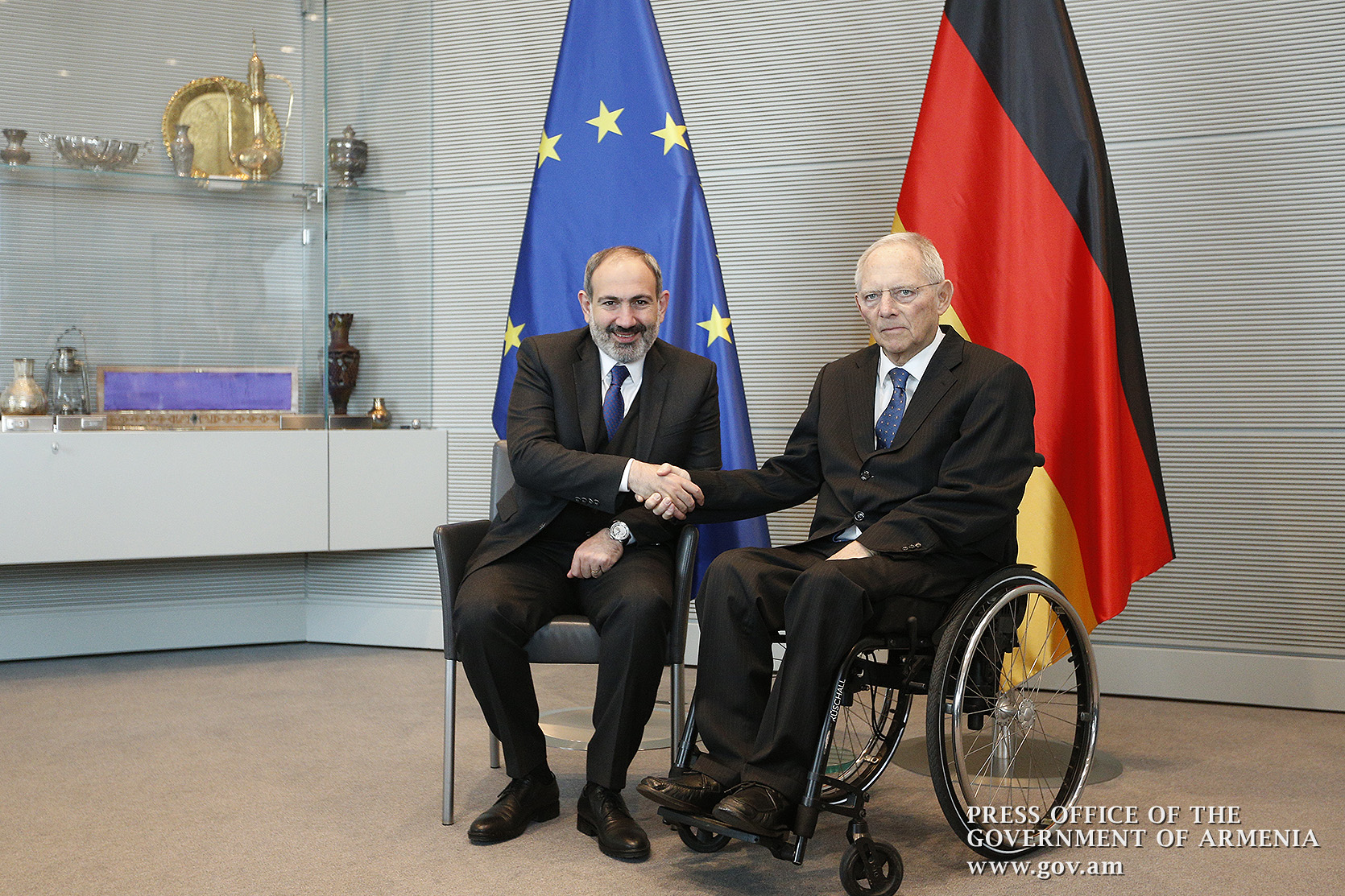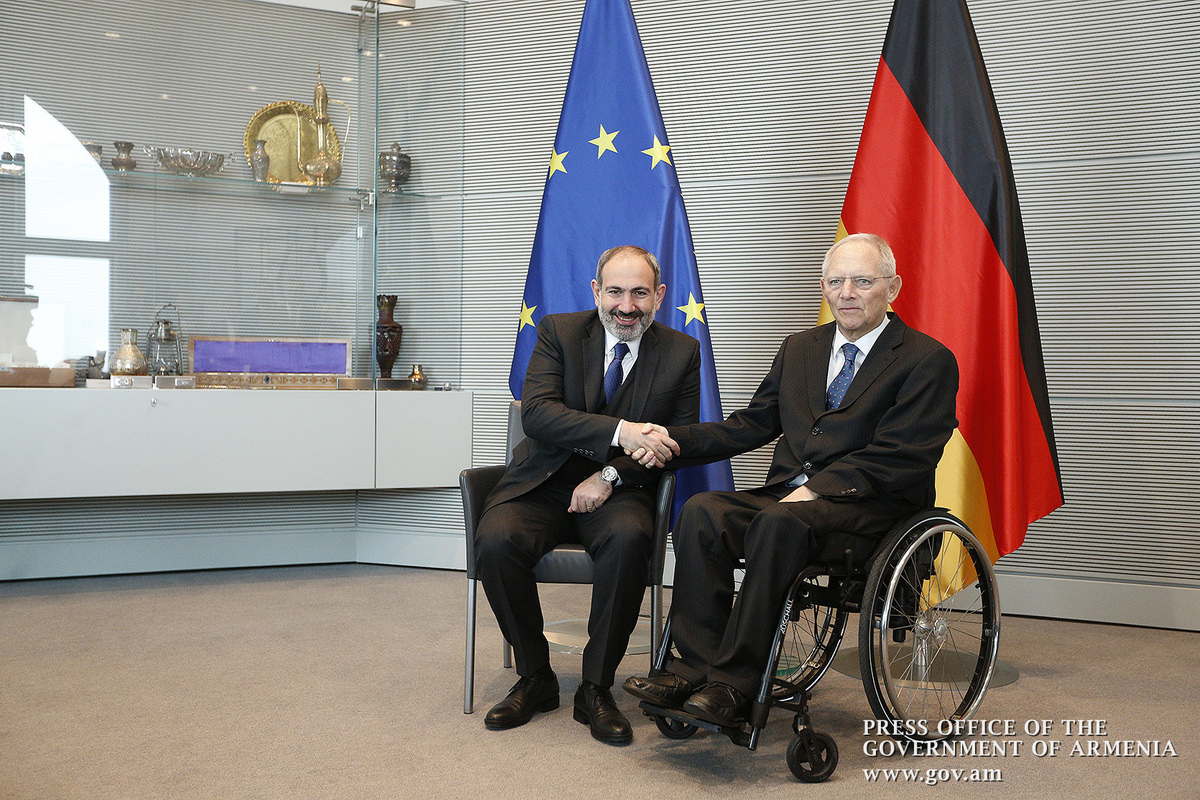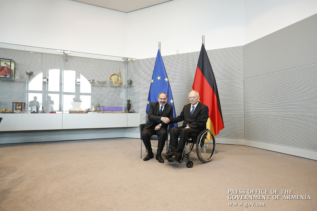 Dans le cadre de sa visite en République fédérale d'Allemagne, le Premier ministre arménien Nikol Pashinyan a rencontré aujourd'hui le Président du Bundestag allemand, Wolfgang Schäuble.
