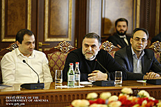 Les représentants des entreprises ont ensuite présenté leurs problèmes, suggestions et observations au Chef du gouvernement. Ils ont notamment discuté des possibilités d'attirer de nouveaux investissements dans le domaine, des modalités de remboursement des prêts bonifiés aux entreprises, de l'amélioration des exportations, de l'administration fiscale et du domaine législatif. Les problèmes liés à la prévention des maladies dans les vignobles, le programme national pour l'introduction de systèmes d'irrigation parcimonieuse, ainsi que les problèmes liés aux activités et à l'efficacité du Fonds arménien de la viticulture et de l’industrie vinicole ont également été abordés.