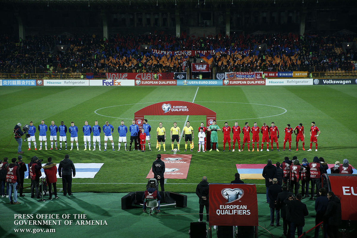Le Premier ministre Nikol Pashinyan a suivi le match de football Arménie-Finlande du tour de qualification du Championnat d'Europe 2020 au Stade républicain d'Erevan.
