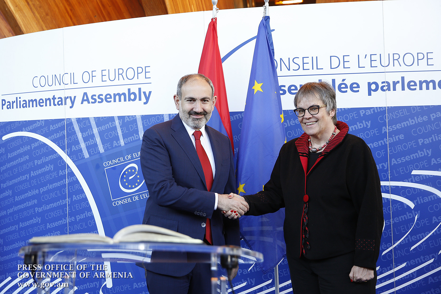 Le Premier ministre Nikol Pashinyan a rencontré la Présidente de l'Assemblée parlementaire du Conseil de l'Europe, Liliane Maury Pasquier. Avant la rencontre, le Premier ministre Pashinyan a fait une note dans le «Livre d'or» de la Présidente de l'APCE.