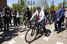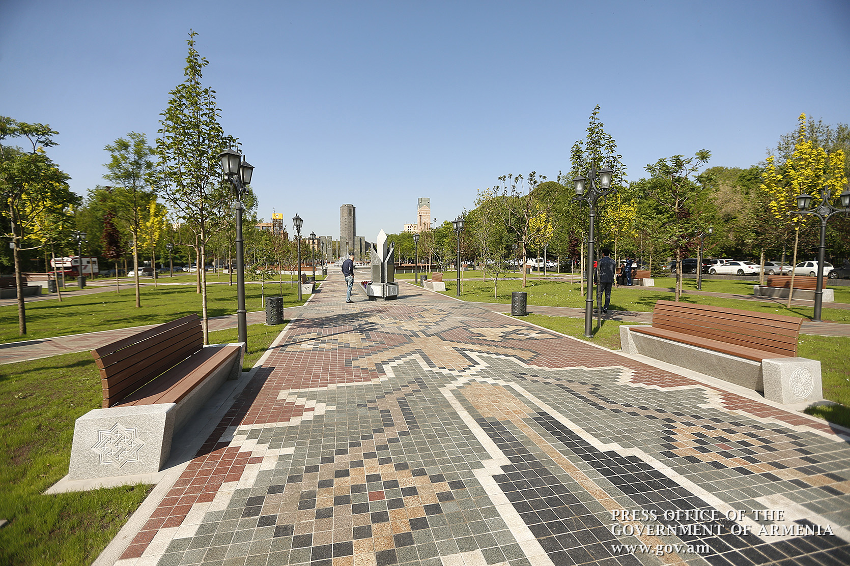 L'auteur du projet du parc, Karen Vartanian, a présenté les travaux réalisés. Il a noté que les travaux de construction avaient été effectués pendant un an et demi. Des fontaines, des statues en bronze, des bancs, des poubelles et des lampes ont également été installés.