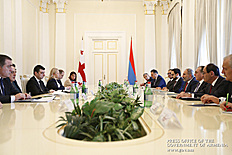 « Monsieur le Premier ministre, Monsieur Gakharia, J'ai le plaisir de vous saluer à Erevan en tant que Premier ministre du peuple géorgien. Je suis heureux qu'avant notre réunion, nous ayons déjà pu établir des relations de travail chaleureuses. Il est important de noter que nous sommes convaincus que, grâce aux négociations d'aujourd'hui, les relations entre nos pays seront encore renforcées. Si on me demande quelles ont été mes réalisations en tant que Premier ministre au cours cours de cette année et demie, je soulignerai tout d’abord la formation d’un nouveau niveau de relations avec la Géorgie. Dans le même temps, je suis convaincu que, grâce à nos travaux, la coopération bilatérale se développera plus rapidement. Soyez le bienvenu, Monsieur le Premier ministre», a noté Nikol Pashinyan.