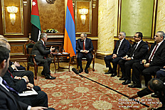 Je suis très heureux d'avoir l'opportunité de vous revoir. Je voudrais souligner que notre peuple a des souvenirs historiques très positifs liés à votre pays, parce que votre pays, votre peuple a montré un grand soutien aux survivants du génocide arménien, et ce fait rend notre attitude envers la Jordanie et son peuple plus chaleureuse. Il s'agit d'une base très puissante pour notre relation et j'espère que sur cette base, nous serons en mesure de construire des relations vraiment impressionnantes. Merci beaucoup. »