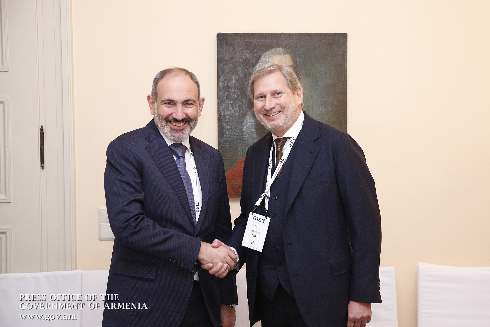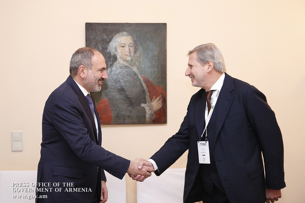 Dans le cadre de la Conférence de Munich sur la sécurité, le Premier ministre Nikol Pashinyan a rencontré le Commissaire européen au Budget et à l'Administration, Johannes Hahn.