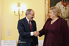 Le Premier ministre Pashinyan a noté qu'il s'agissait de leur première rencontre et a exprimé l'espoir que les réunions des représentants des gouvernements seront de nature continue, ce qui contribuera au développement des relations entre l'Arménie et la Norvège. Nikol Pashinyan a noté que l'Arménie souhaitait coopérer avec la Norvège dans divers domaines, notamment le développement des relations commerciales et économiques.