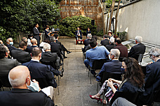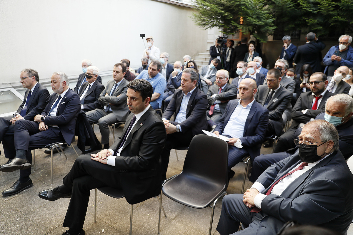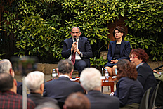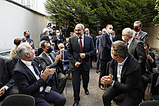 Le Premier ministre par intérim a d'abord eu un entretien privé avec le coprésident du Conseil de coordination des organisations arméniennes de France, Ara Toranyan, et le membre du conseil d'administration, secrétaire du bureau local, Petros Terzian.