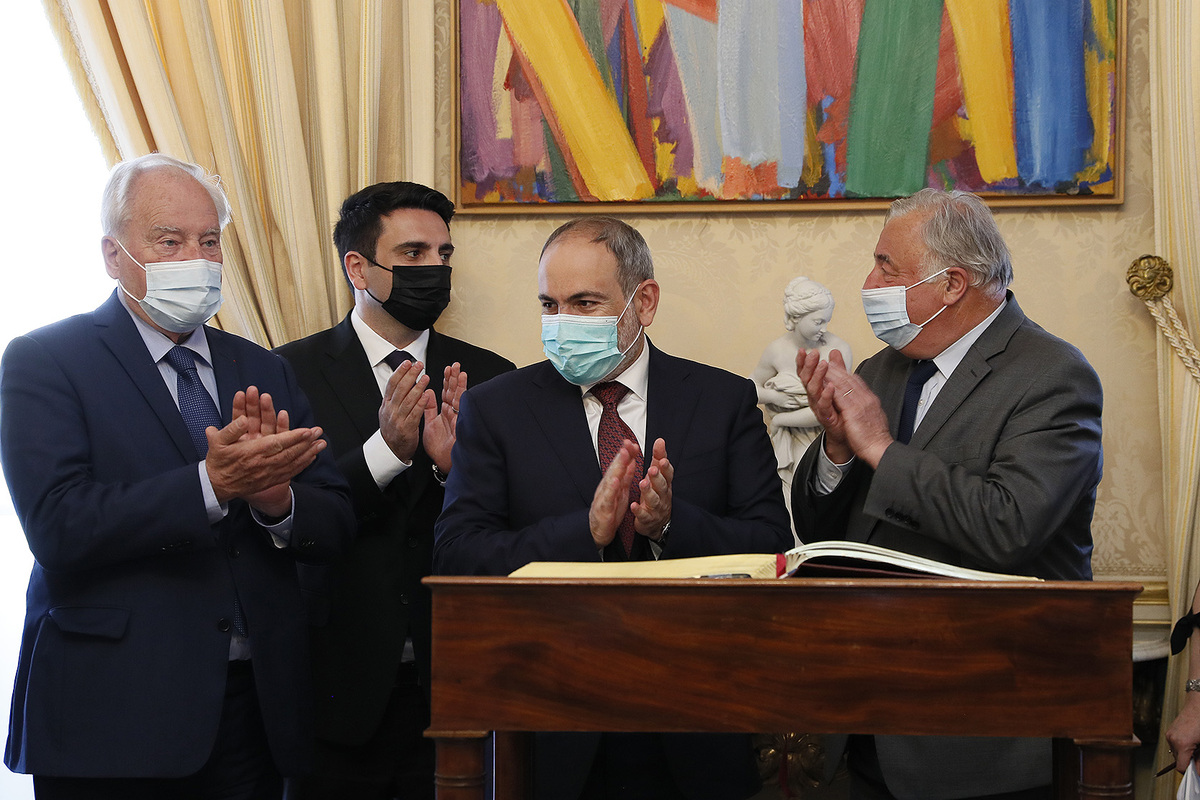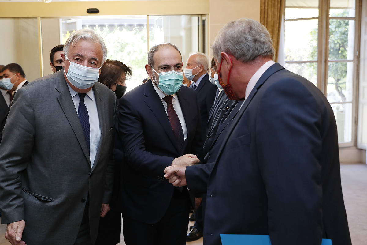 Le Premier ministre par intérim Nikol Pashinyan, en visite de travail en France, a rencontré le Président du Sénat de la République française Gérard Larcher.