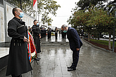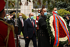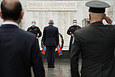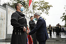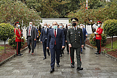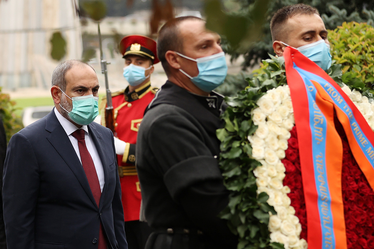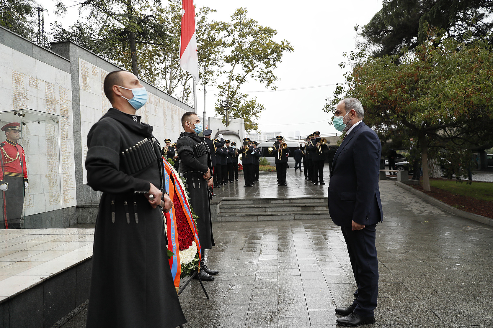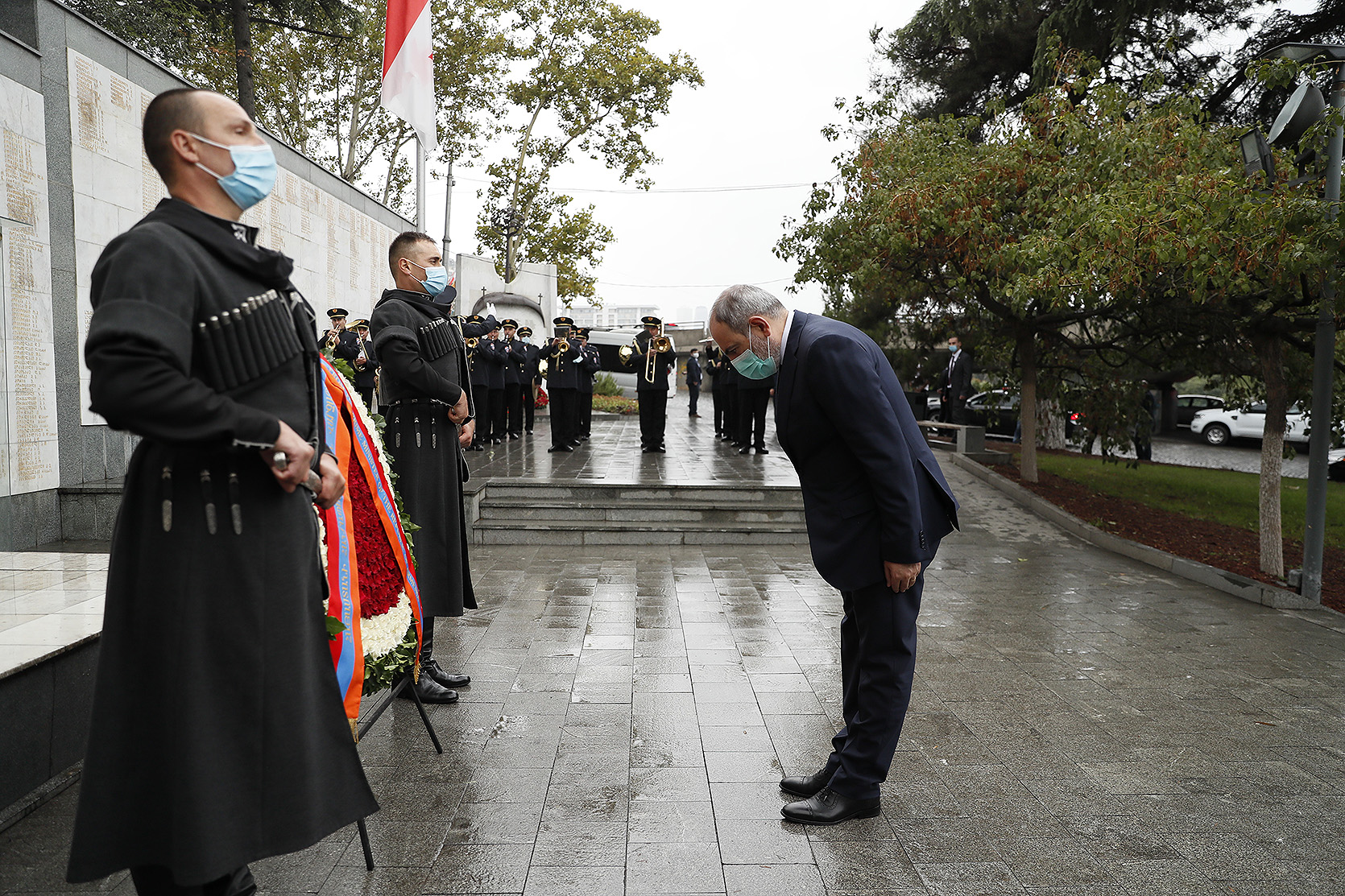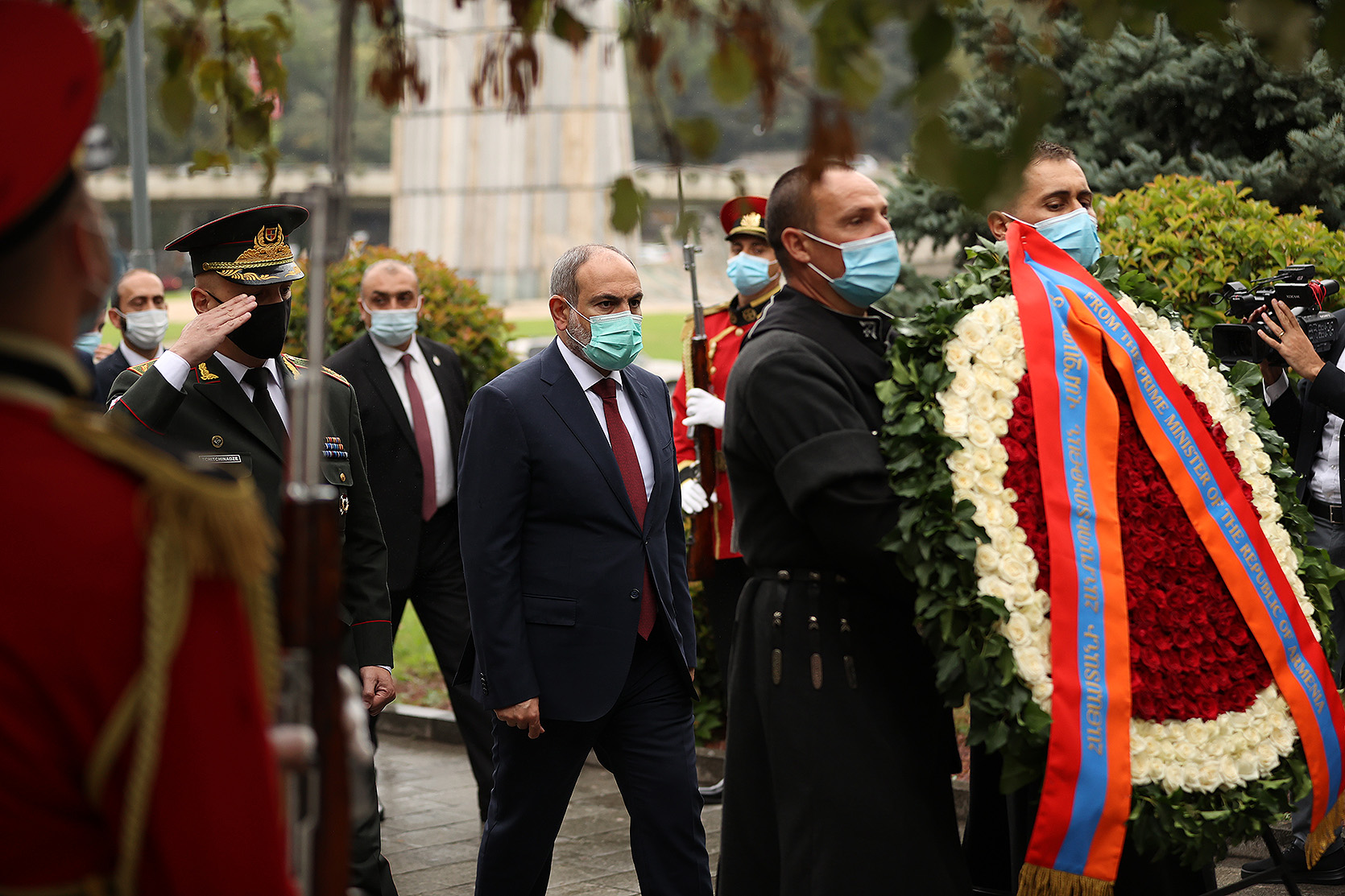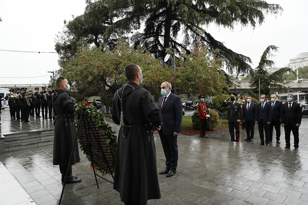 Nikol Pashinyan s'est rendu sur la place des Héros à Tbilissi et, accompagné d'une garde d'honneur, a présenté ses respects en déposant une gerbe à la flamme éternelle.