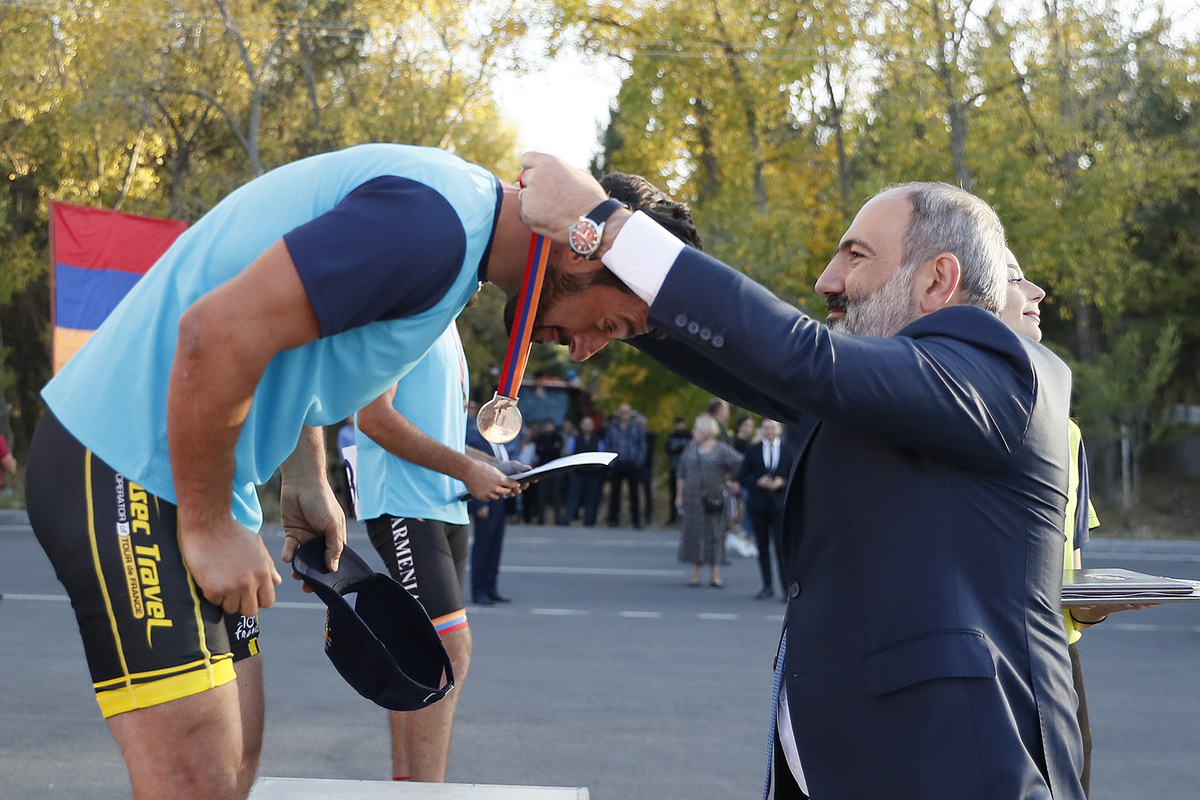 Le Premier ministre Nikol Pashinyan a participé à la cérémonie de remise des prix des vainqueurs du tournoi amateur de cyclisme sur route "Coupe du Premier ministre de la République d'Arménie" sur la péninsule du lac Sevan.