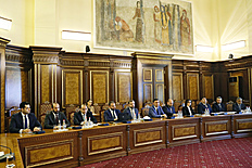 Le ministre des Finances, Tigran Khachatryan, a évoqué la structure des recettes fiscales, les objectifs de la réforme de plusieurs types d'impôts, les possibilités d'améliorer le ratio impôts/PIB sur cette base. Le ministre a présenté les dépenses dans le cadre du programme de dépenses à moyen terme 2023-2025, le processus d'évaluation des demandes soumises par les départements, qui ont été réalisées sur la base du plan d'action du gouvernement 2021-2026, des stratégies sectorielles, de la réglementation et de la rationalité des offres. Il a été mentionné que la révision du cadre budgétaire du CDMT 2023-2025 est également conditionnée par la situation économique internationale et les prévisions sur la croissance économique des pays partenaires. Les prévisions sur les indicateurs macroéconomiques, la croissance économique, les opportunités et les risques pour atteindre les objectifs du gouvernement en termes de dépenses courantes et en capital ont été présentées.