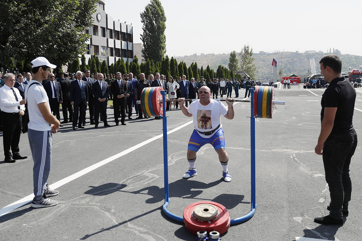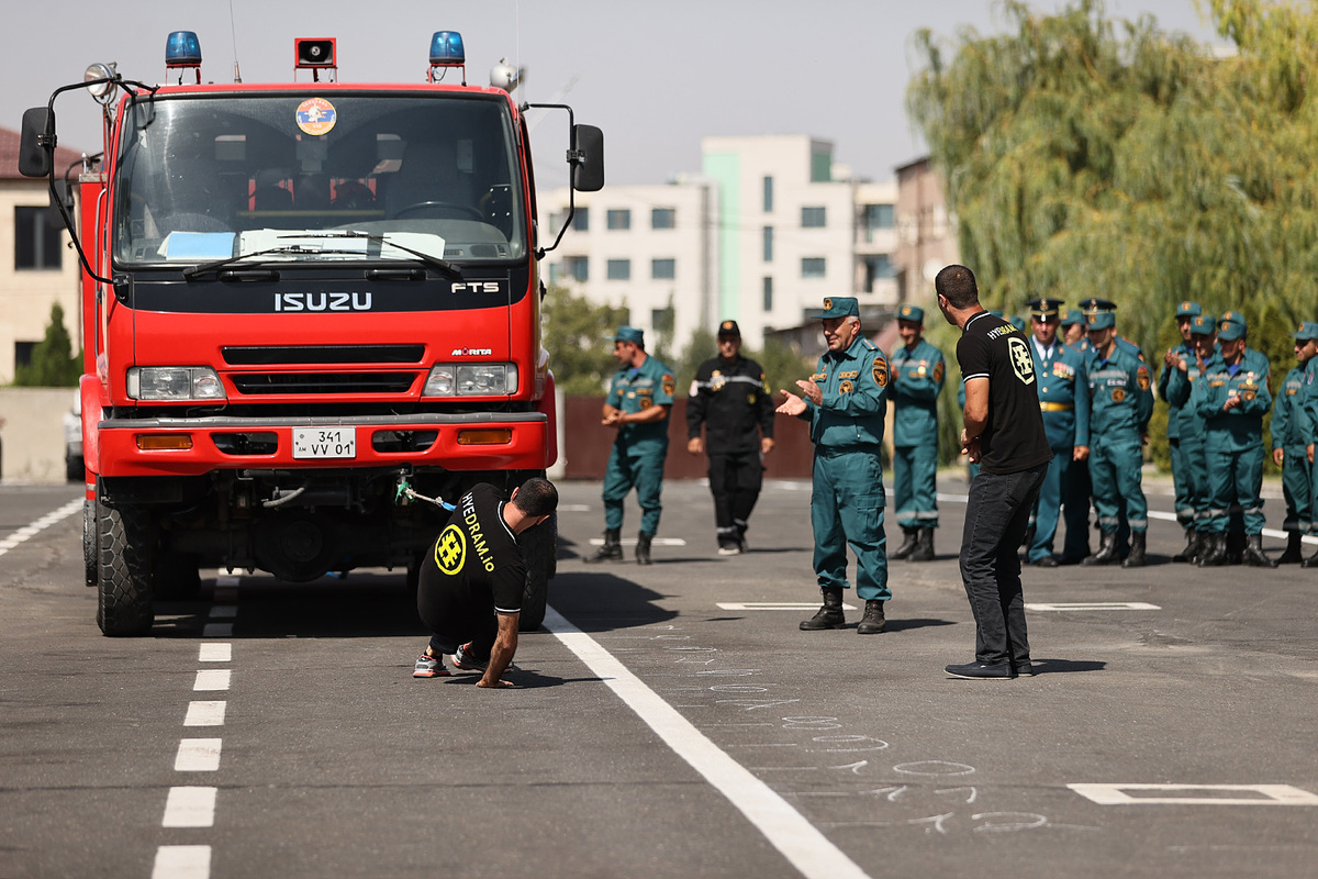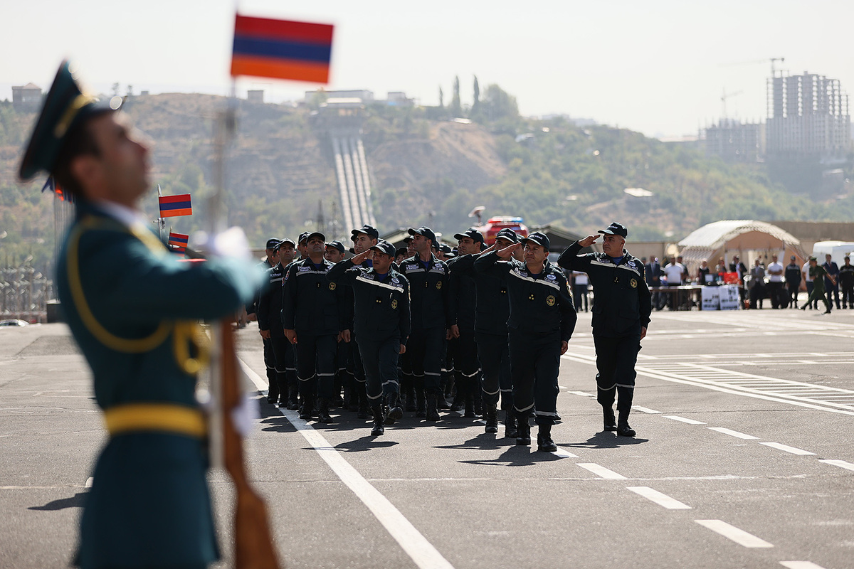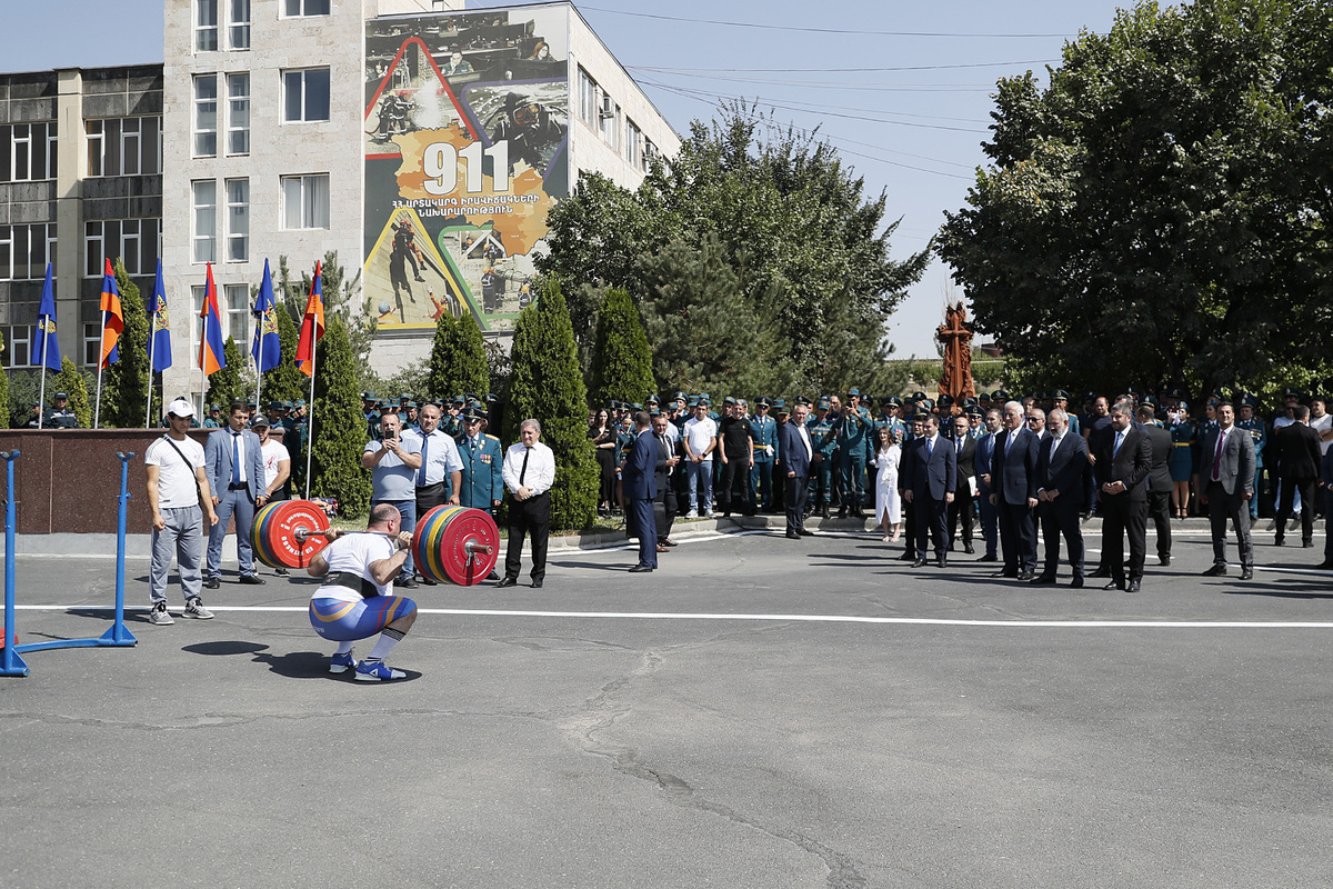 Ensuite, le chef du gouvernement et le Président de la République ont regardé un défilé solennel des unités structurelles du service de sauvetage du ministère des Situations d'urgence de la République d'Arménie et un exercice de démonstration présenté par l'équipe spéciale de sauvetage du ministère des Situations d'urgence. Le défilé a présenté les capacités, les équipements techniques et les objectifs des moyens et équipements techniques spéciaux présentés.