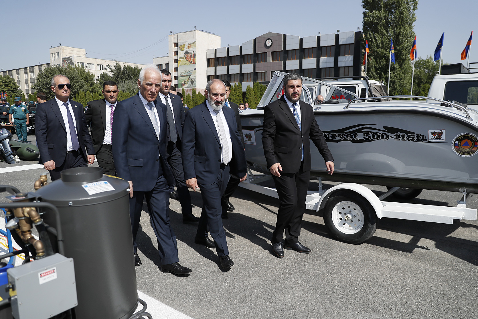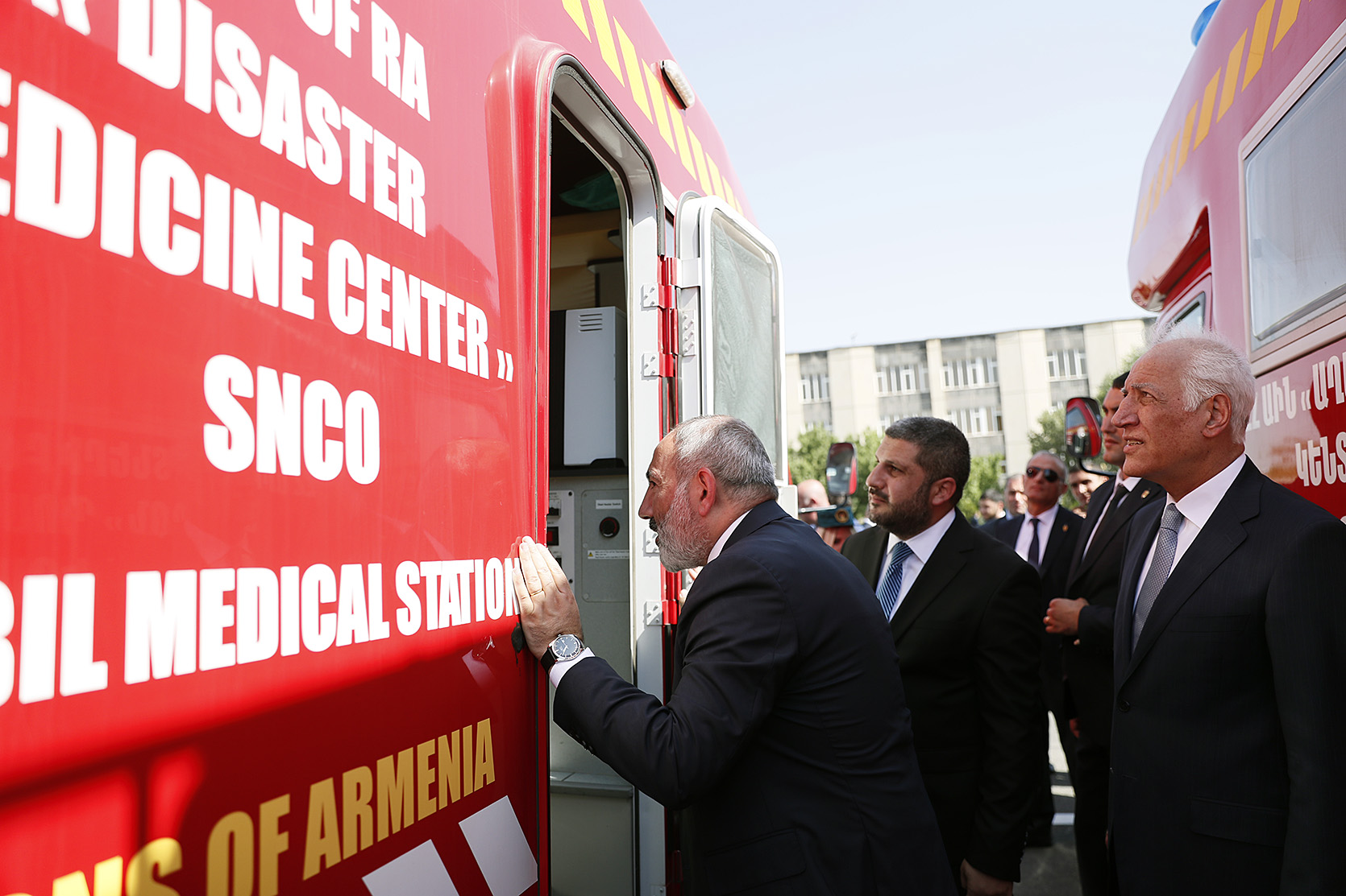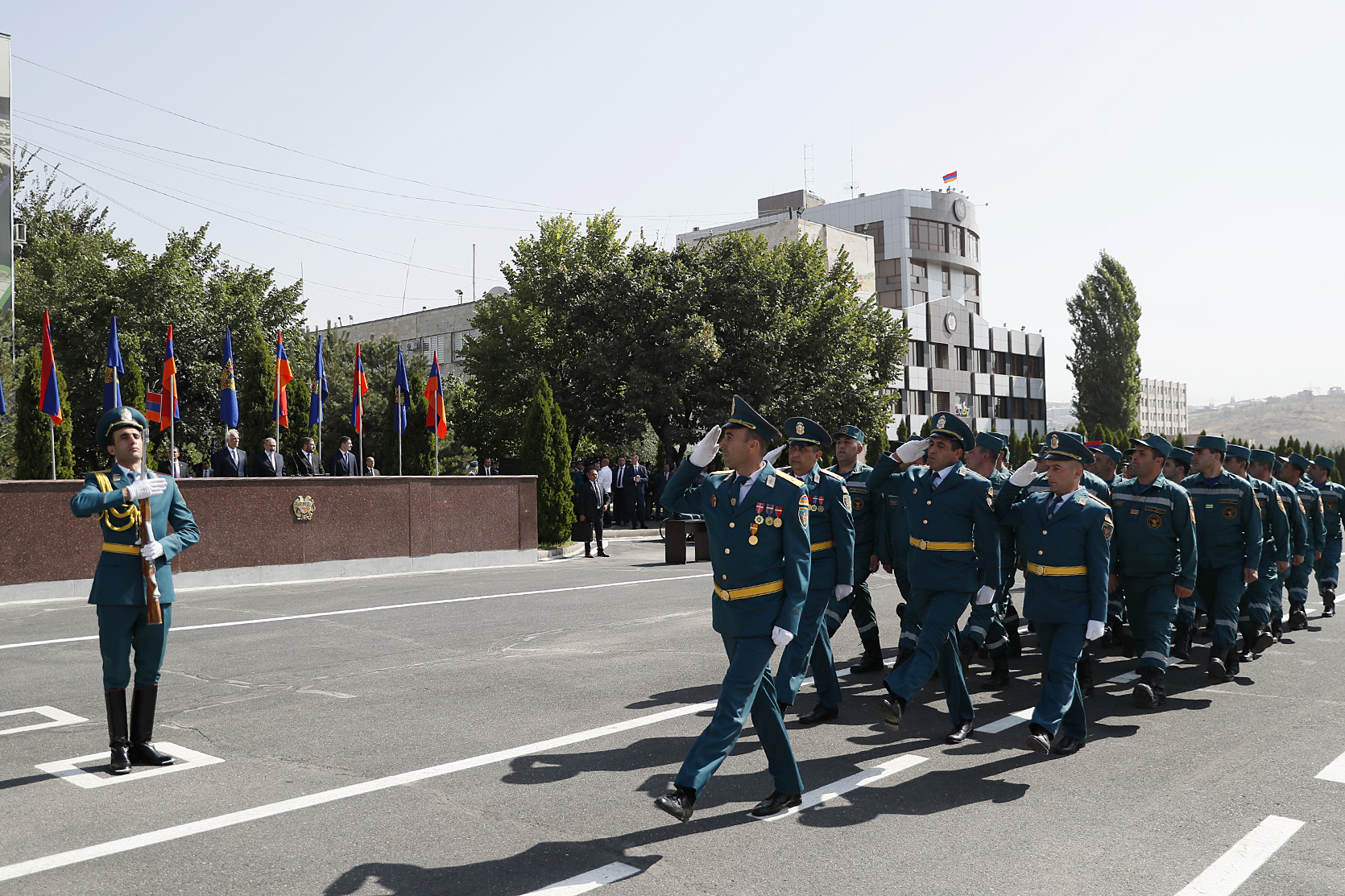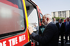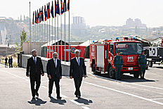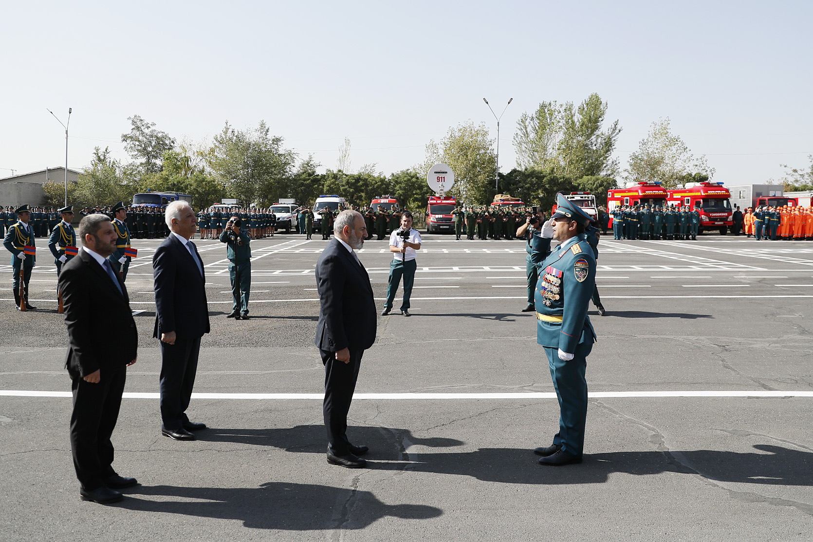 Ensuite, le chef du gouvernement et le Président de la République ont regardé un défilé solennel des unités structurelles du service de sauvetage du ministère des Situations d'urgence de la République d'Arménie et un exercice de démonstration présenté par l'équipe spéciale de sauvetage du ministère des Situations d'urgence. Le défilé a présenté les capacités, les équipements techniques et les objectifs des moyens et équipements techniques spéciaux présentés.