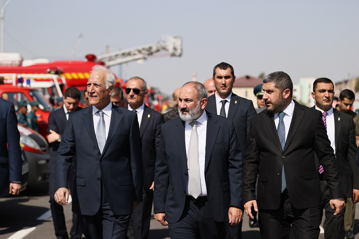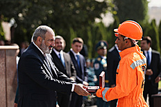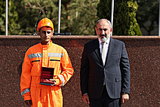 Le Premier ministre Nikol Pashinyan, accompagné du Président de la République Vahagn Khatchatourian, du ministre des Situations d'urgence Armen Pambukhchyan et du Président du Comité d'enquête Argishti Kyaramyan, a assisté à l'événement dédié à la Journée du travailleur d'urgence.