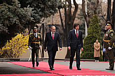 Après la cérémonie officielle d'accueil, les Premiers ministres des deux pays se sont entretenus en privé. Les discussions se sont ensuite poursuivies dans un format élargi.