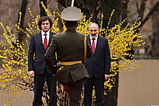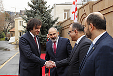 A son tour, Irakli Kobakhidze a déclaré:"Monsieur le Premier ministre, je vous remercie de nous accueillir, moi et ma délégation. Il est important pour nous de faire progresser les relations entre nos deux pays. Récemment, nous avons connu des développements importants, nous avons pu faire évoluer la coopération vers un partenariat stratégique. Il est important de tirer parti de cette nouvelle situation et de développer la coopération dans tous les domaines. Nous partageons les mêmes valeurs et nous tenons à vous remercier pour le soutien que vous apportez à notre souveraineté et à notre intégrité territoriale. Bien entendu, nous avons une position ferme concernant la souveraineté et l'intégrité territoriale de l'Arménie. La coopération politique est à un très bon niveau, mais il est toujours possible de l'approfondir, et il en va de même pour les relations économiques."