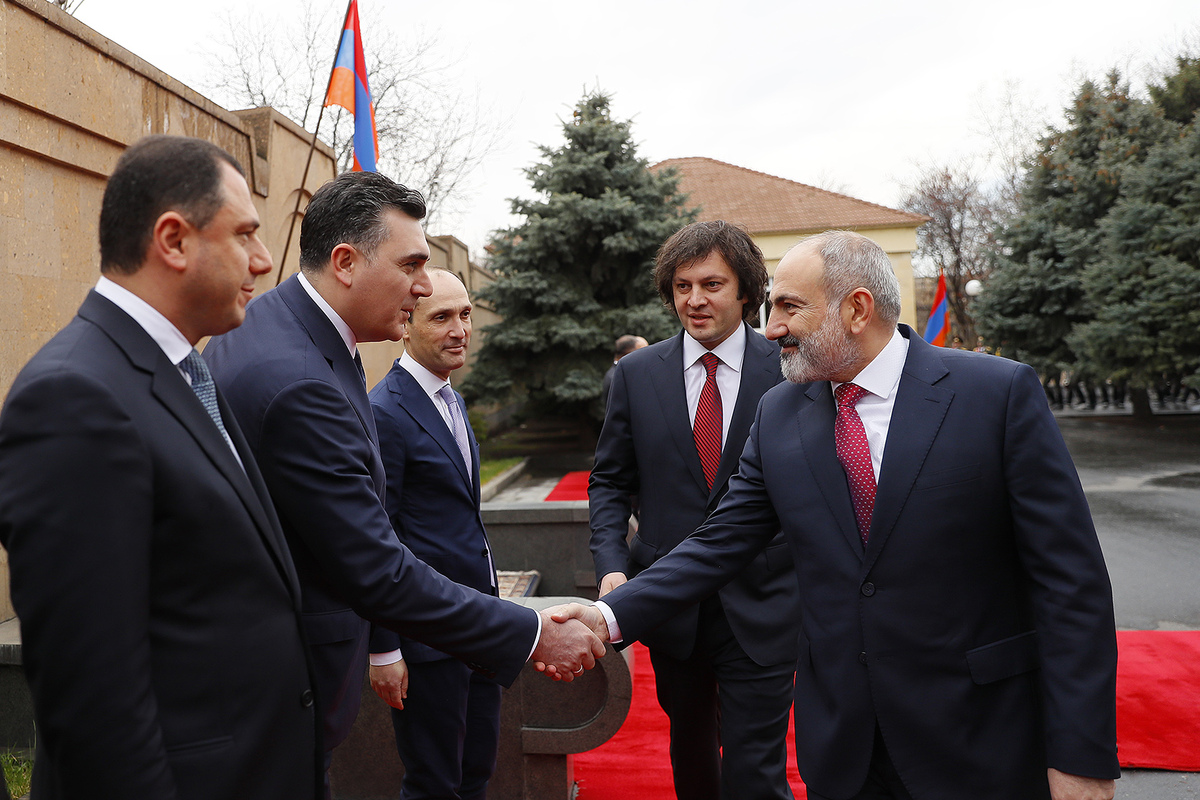 Dans son discours de bienvenue, le Premier ministre Pashinyan a déclaré: "Monsieur le Premier ministre Kobakhidze, je vous souhaite la bienvenue, à vous et à votre délégation, dans notre République et dans notre capitale. Permettez-moi de vous renouveler mes félicitations personnelles à l'occasion de votre nomination au poste de Premier ministre de la Géorgie fraternelle, avec l'espoir et la confiance que nos gouvernements coopéreront pour accroître et développer la coopération dans divers domaines. Je suis heureux que nous venions de discuter de notre déclaration sur le dialogue stratégique entre l'Arménie et la Géorgie et que nous ayons réaffirmé que nous continuerons à nous occuper de l'agenda de cette déclaration. Votre visite est très importante, c'est votre première visite en Arménie. Je suis sûr que nous aurons une coopération et un dialogue très actifs, y compris des visites bilatérales actives. Je vous souhaite donc la bienvenue dans notre pays. "