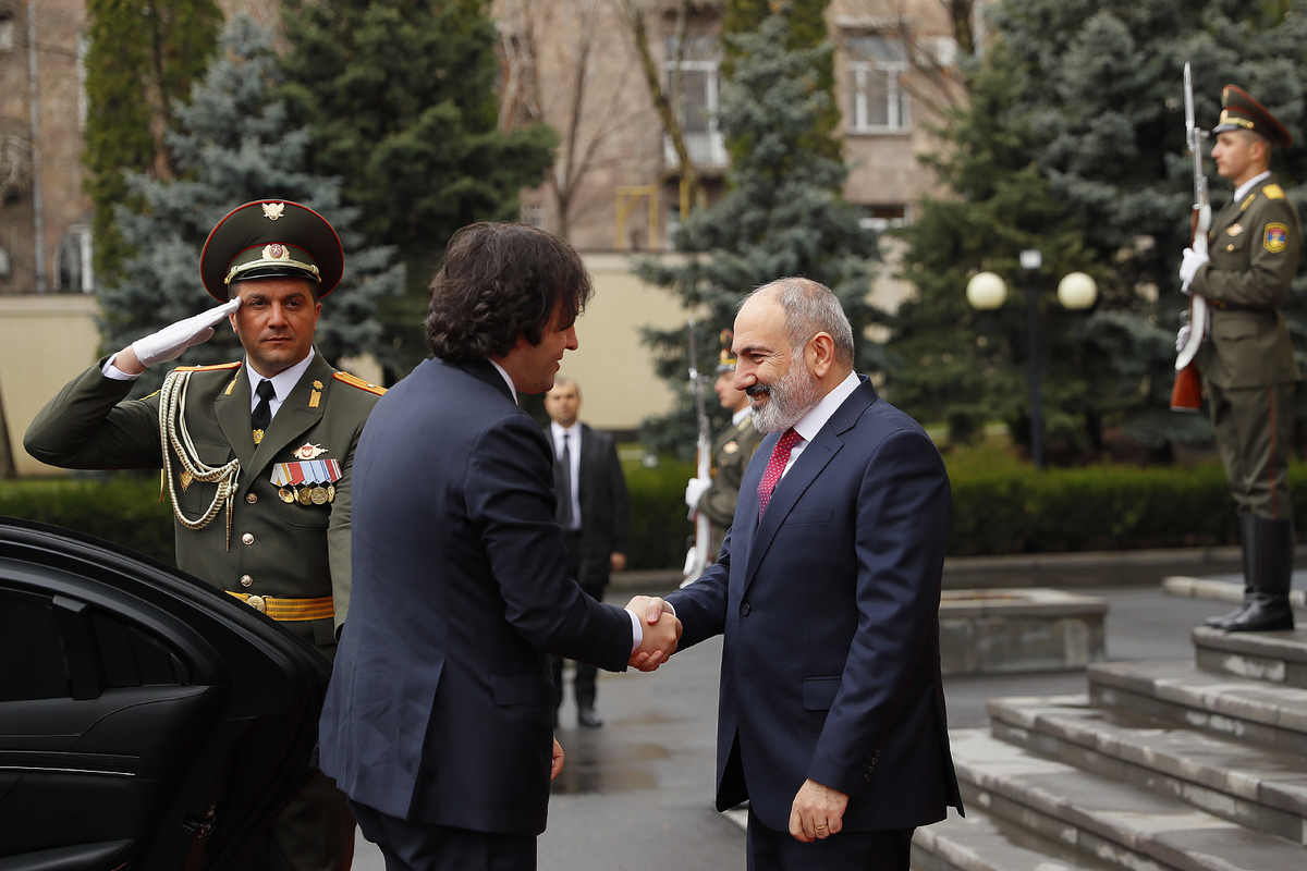 Le Premier ministre Nikol Pashinyan a accueilli le Premier ministre géorgien Irakli Kobakhidze, en visite officielle en Arménie.