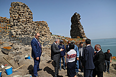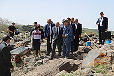 Le Premier ministre Pashinyan, accompagné de la ministre de l'éducation, des sciences, de la culture et des sports Zhanna Andreasyan, a également visité la forteresse de Berdkunk ou Spitak, située dans le village de Berdkunk de la communauté de Gavar, où des fouilles archéologiques sont en cours.