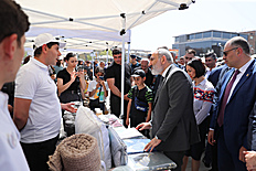 L'événement s'est ensuite poursuivi sur la place centrale de Gavar, où les 5 communautés de la région de Gegharkunik, les jeunes entrepreneurs de la communauté de Gavar, les individus et les organisations engagés dans la production alimentaire et les fournisseurs de services touristiques ont été présentés sur des stands. Au cours de la visite, le Premier ministre s'est familiarisé avec l'artisanat des étudiants des institutions éducatives et culturelles.