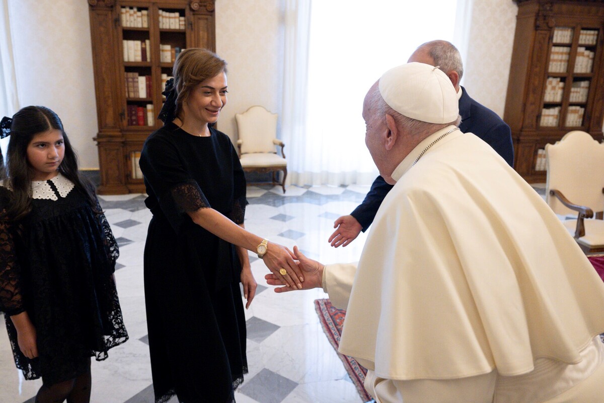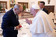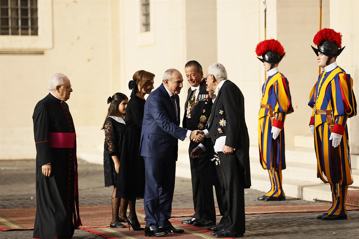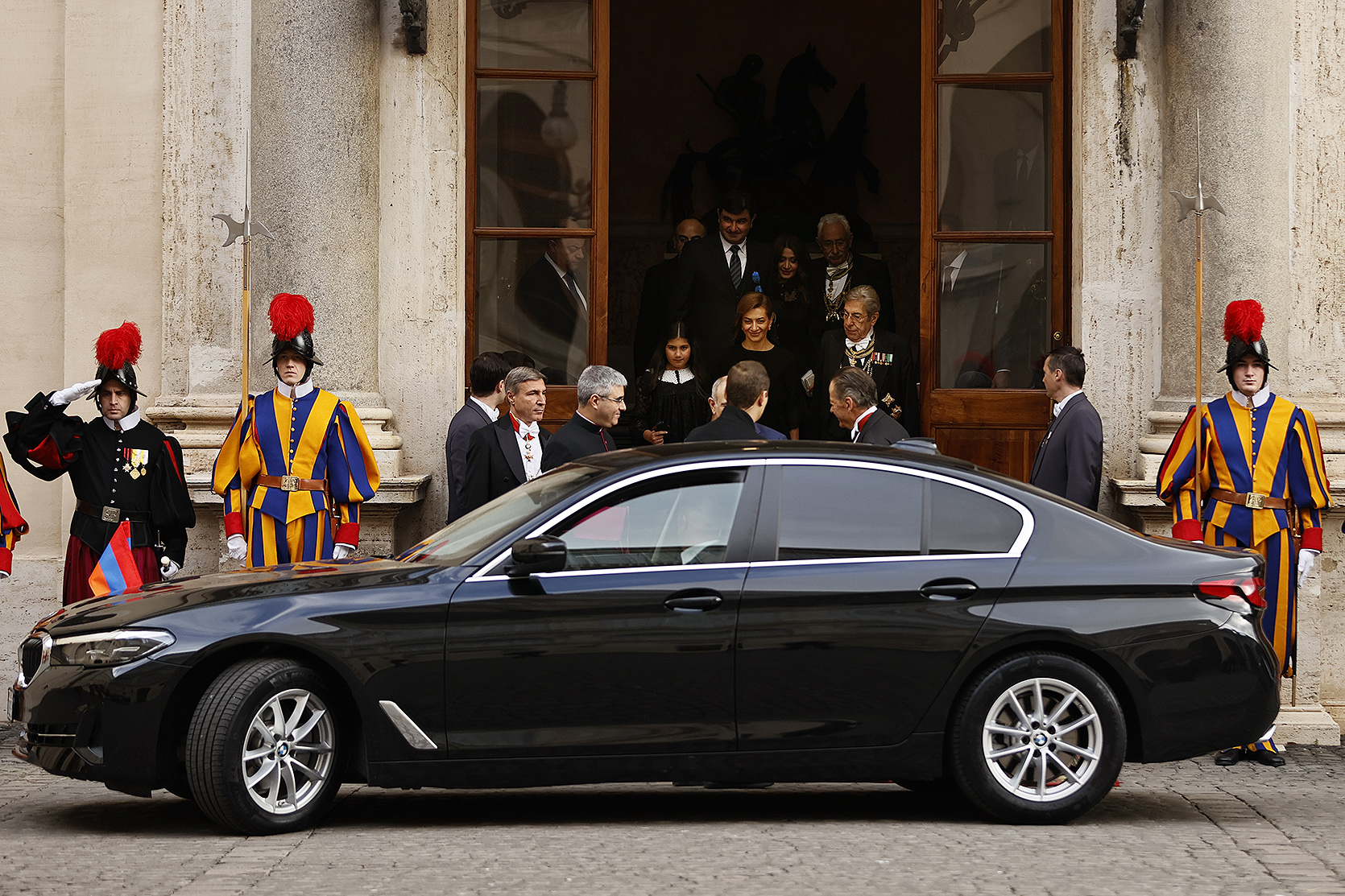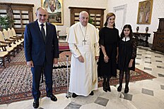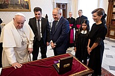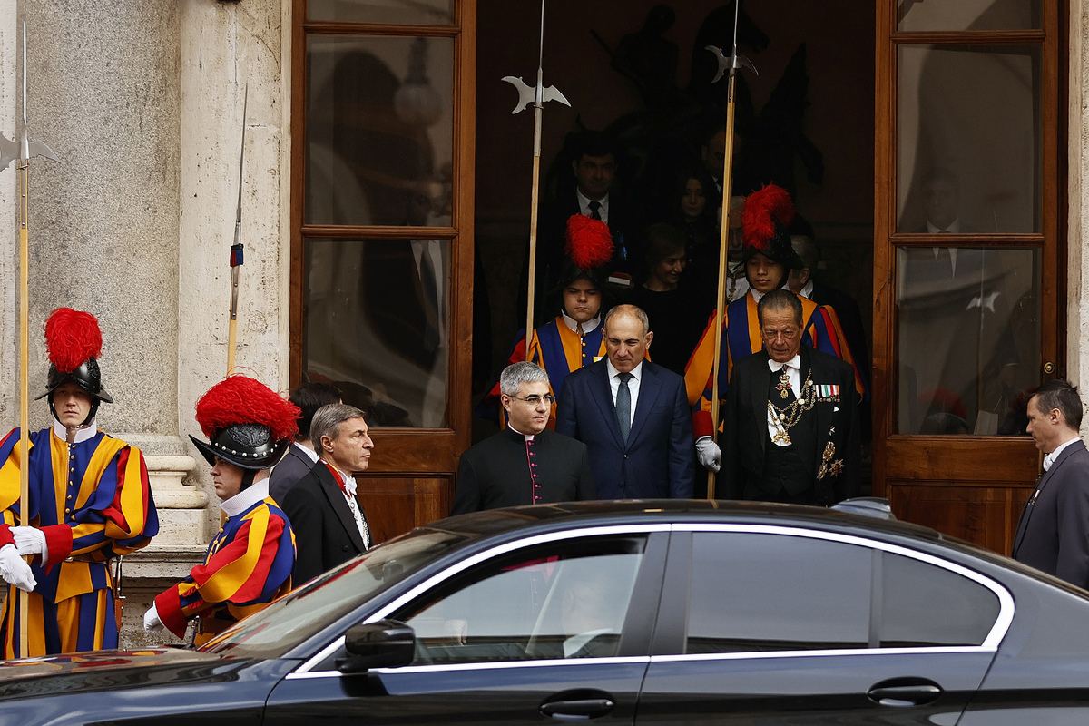 À l'issue de l'entretien privé, le pape François a salué l'épouse du Premier ministre, Anna Hakobyan, sa fille et les membres de la délégation accompagnant le Premier ministre.