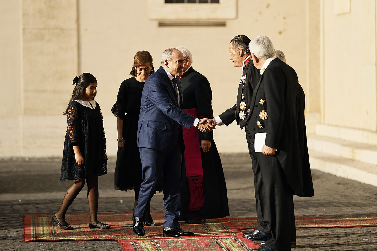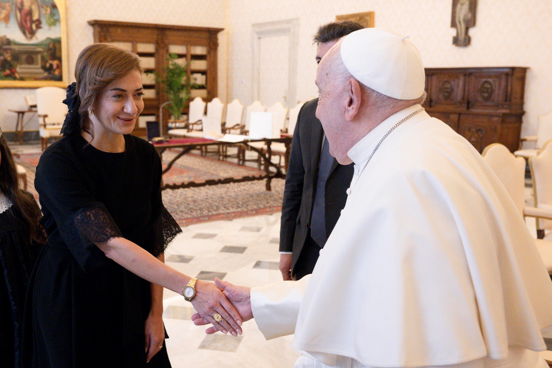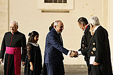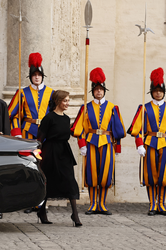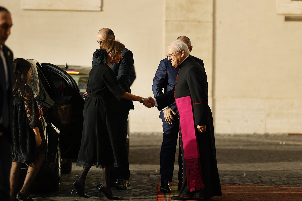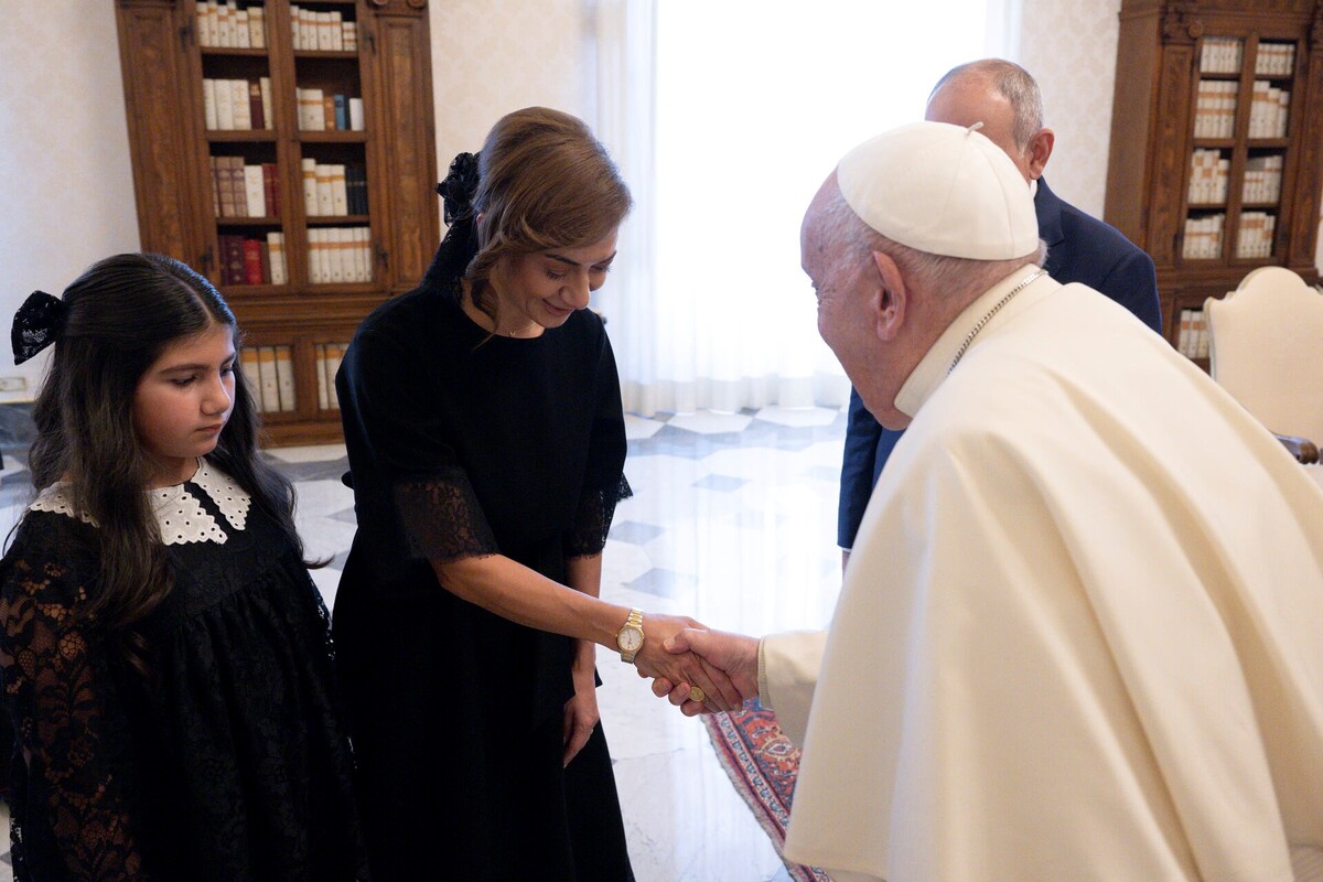 À l'issue de l'entretien privé, le pape François a salué l'épouse du Premier ministre, Anna Hakobyan, sa fille et les membres de la délégation accompagnant le Premier ministre.