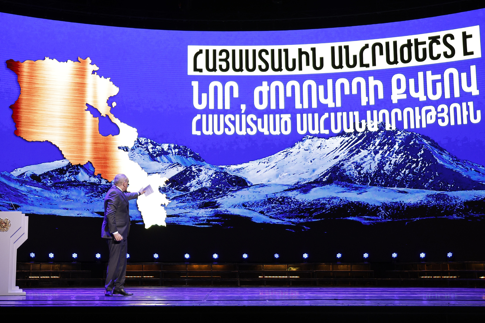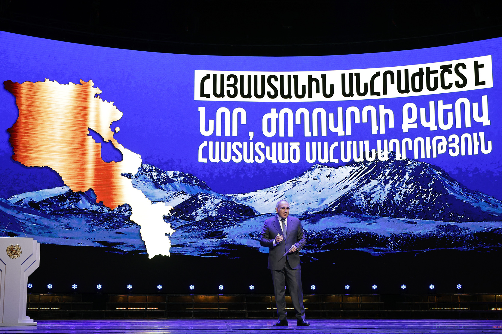 « Le constituant de l’ordre juridique, c’est le people. Quelle que soit la beauté et la qualité de la Constitution que nous pourrions rédiger, si le Dieu de l'ordre juridique, c’est-à-dire le peuple, n'a pas manifesté sa libre expression et obtenu les résultats indiscutables et incontestables du référendum n’a pas eu lieu, alors la patrie continuera d’être perçue chez nous comme une plateforme de résistance à l’État. Et quelle est la solution ? La solution est la suivante : la République d’Arménie a besoin d’une nouvelle Constitution, approuvée par le peuple à travers son vote, afin que le peuple considère cette Constitution comme sienne, comme lui appartenant, comme une règle de vie dans sa patrie-État qu’il a lui-même créée », a souligné le Premier ministre.