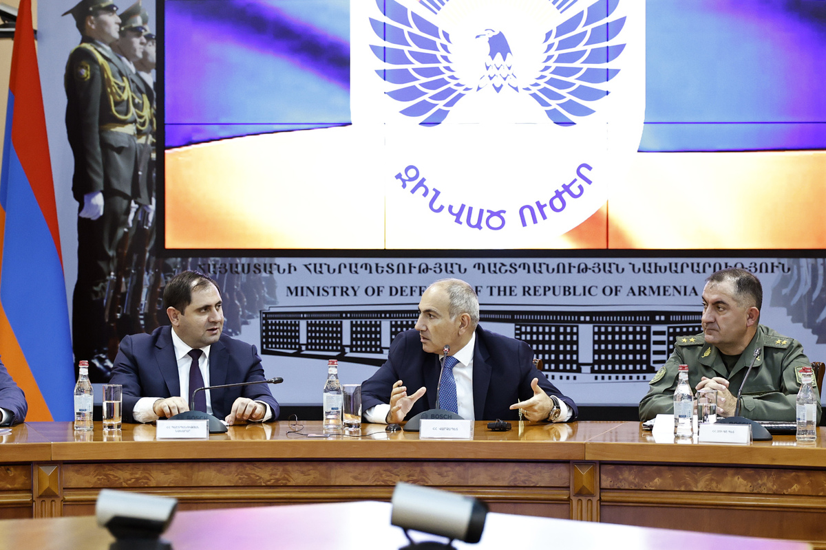 Le Premier ministre Nikol Pashinyan a tenu une rencontre, au ministère de la Défense, avec les participants à la réunion opérationnelle du haut commandement des Forces armées.