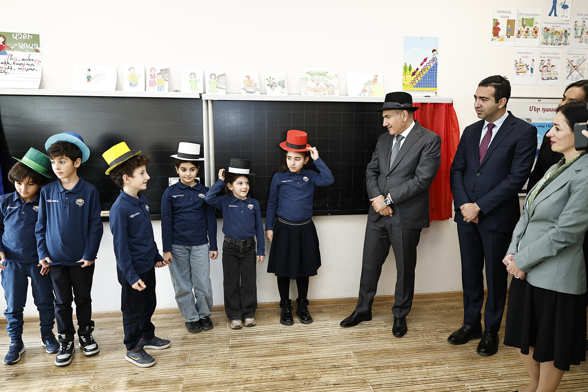 Accompagné de la ministre de l’Éducation, des Sciences, de la Culture et du Sport, Zhanna Andreasyan, du Haut-Commissaire aux Affaires de la Diaspora, Zareh Sinanyan, ainsi que des représentants du bureau arménien de l’AMAA, le Premier ministre a effectué une tournée dans l’école, découvrant le processus éducatif et les infrastructures mises en place.