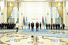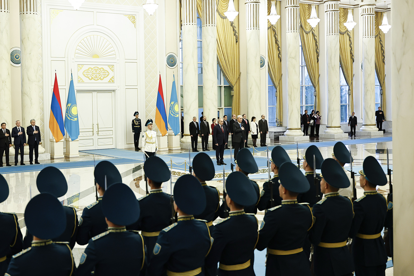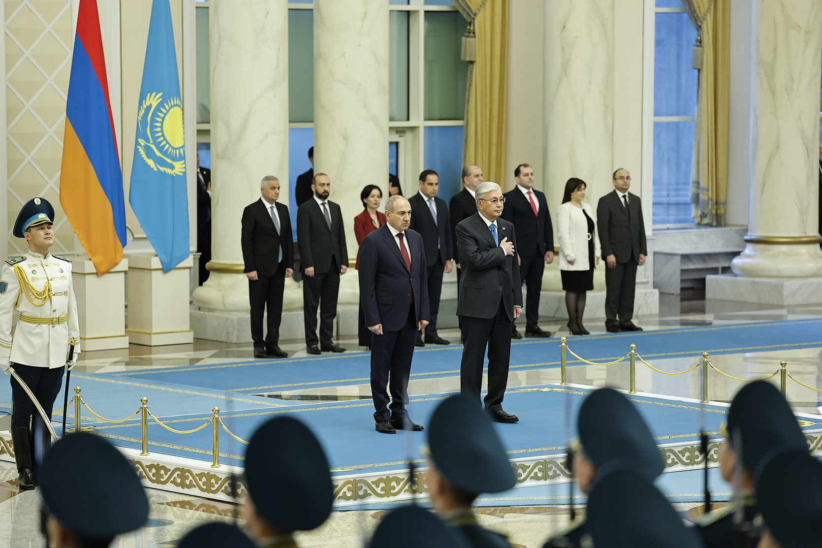 La visite officielle du Premier ministre de la République d'Arménie, Nikol Pashinyan, en République du Kazakhstan a commencé. Tout d'abord, la cérémonie officielle d'accueil du Premier ministre de la République d'Arménie s'est déroulée à la résidence Akorda, au cours de laquelle Nikol Pashinyan et le président du Kazakhstan, Kassym-Jomart Tokayev, ont accueilli les délégations des deux pays, et les hymnes nationaux de l'Arménie et du Kazakhstan ont été interprétés.